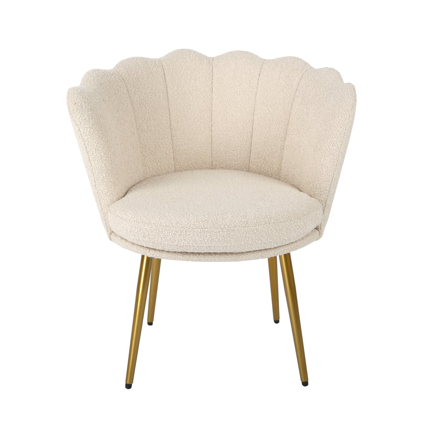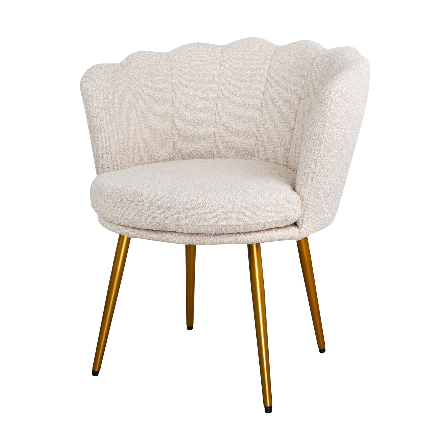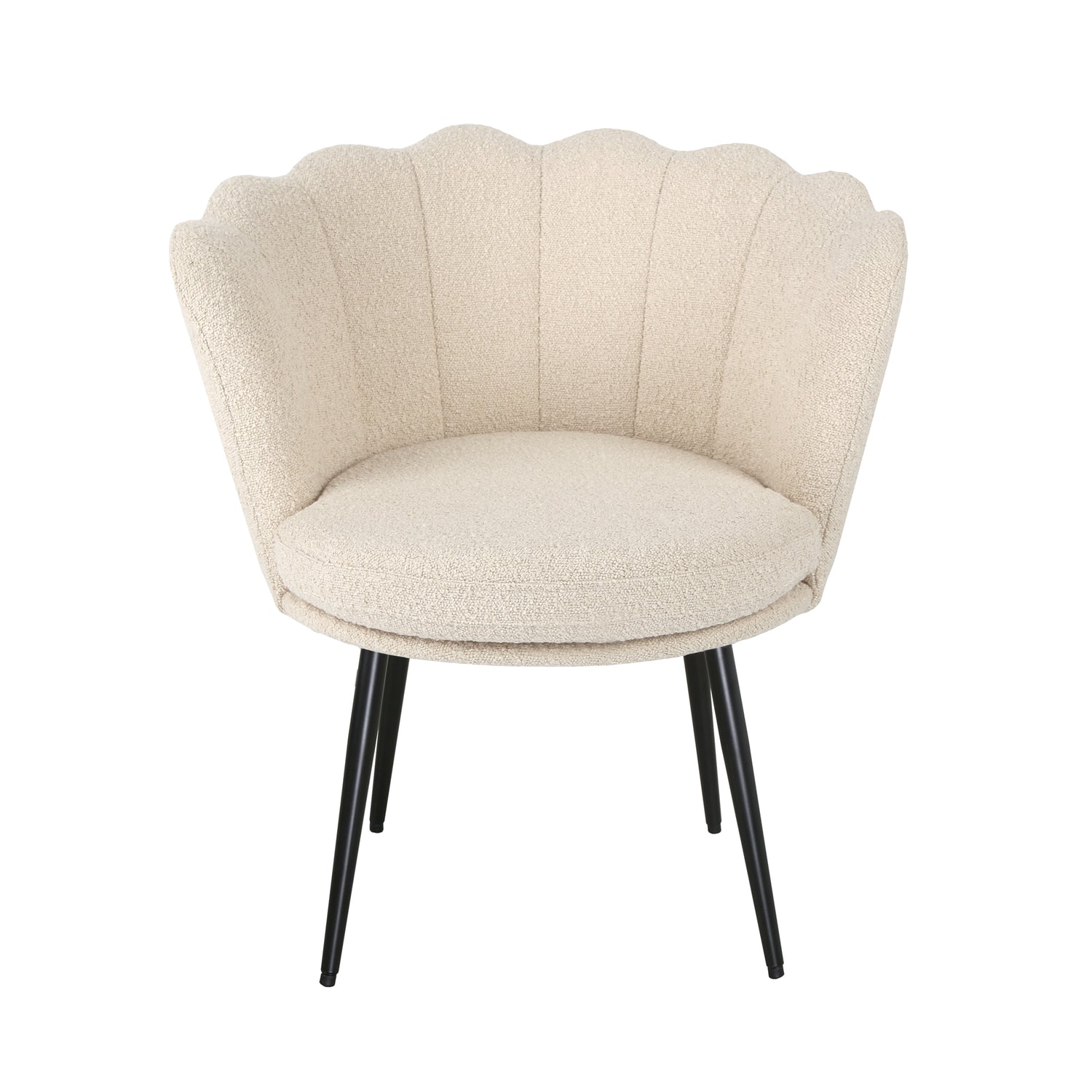 Flora - Boucle Armchair in Cream - Black / Golden Legs