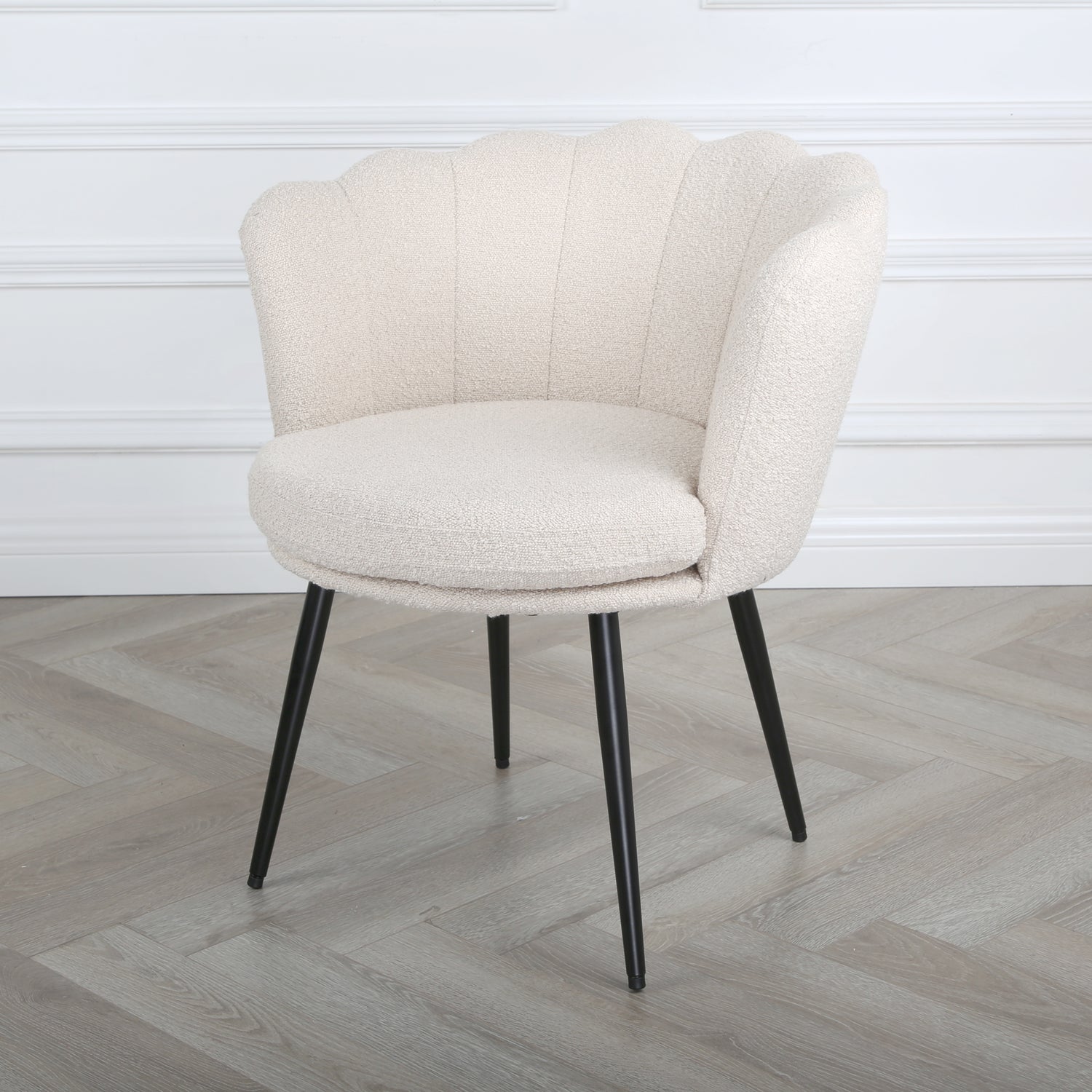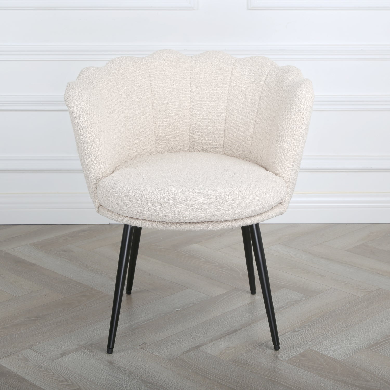 Introducing the Flora boucle armchair, a magnificent fusion of design and comfort that will enhance any contemporary living space, is now available. This chair's distinctive form makes it the ideal addition to any house seeking a touch of refinement.