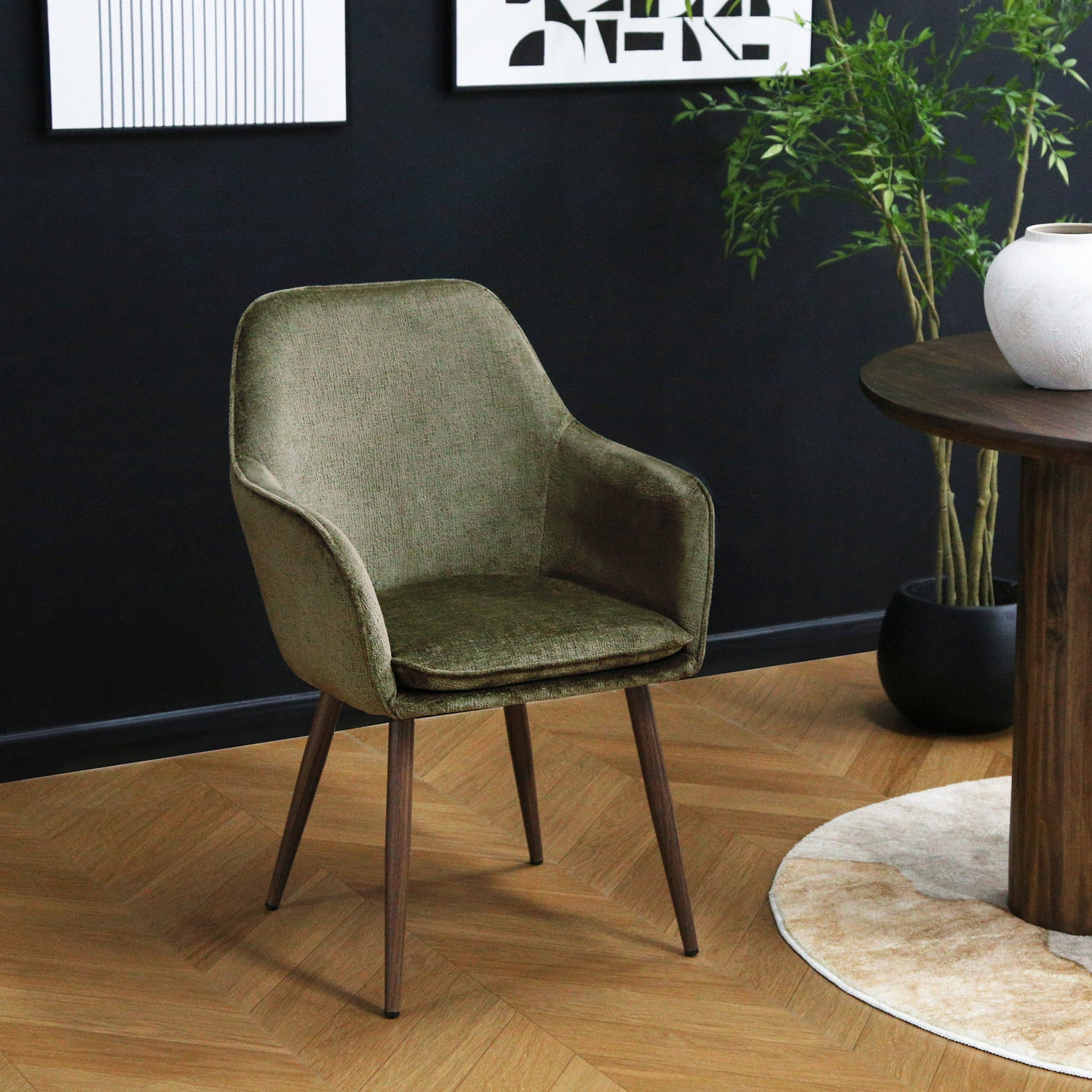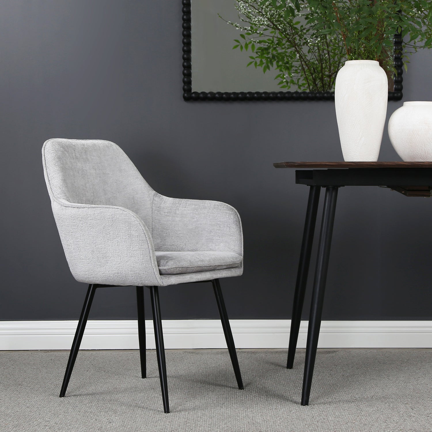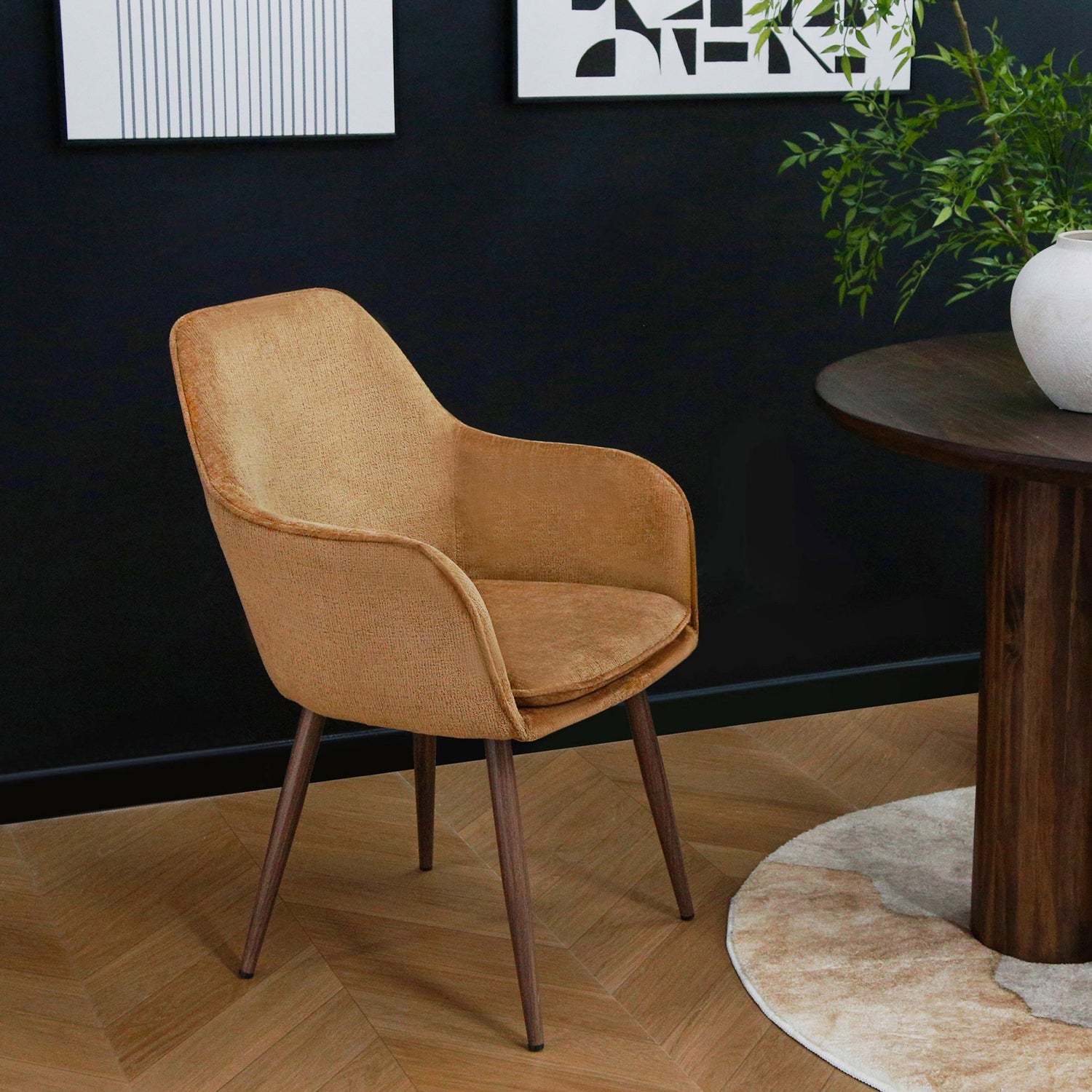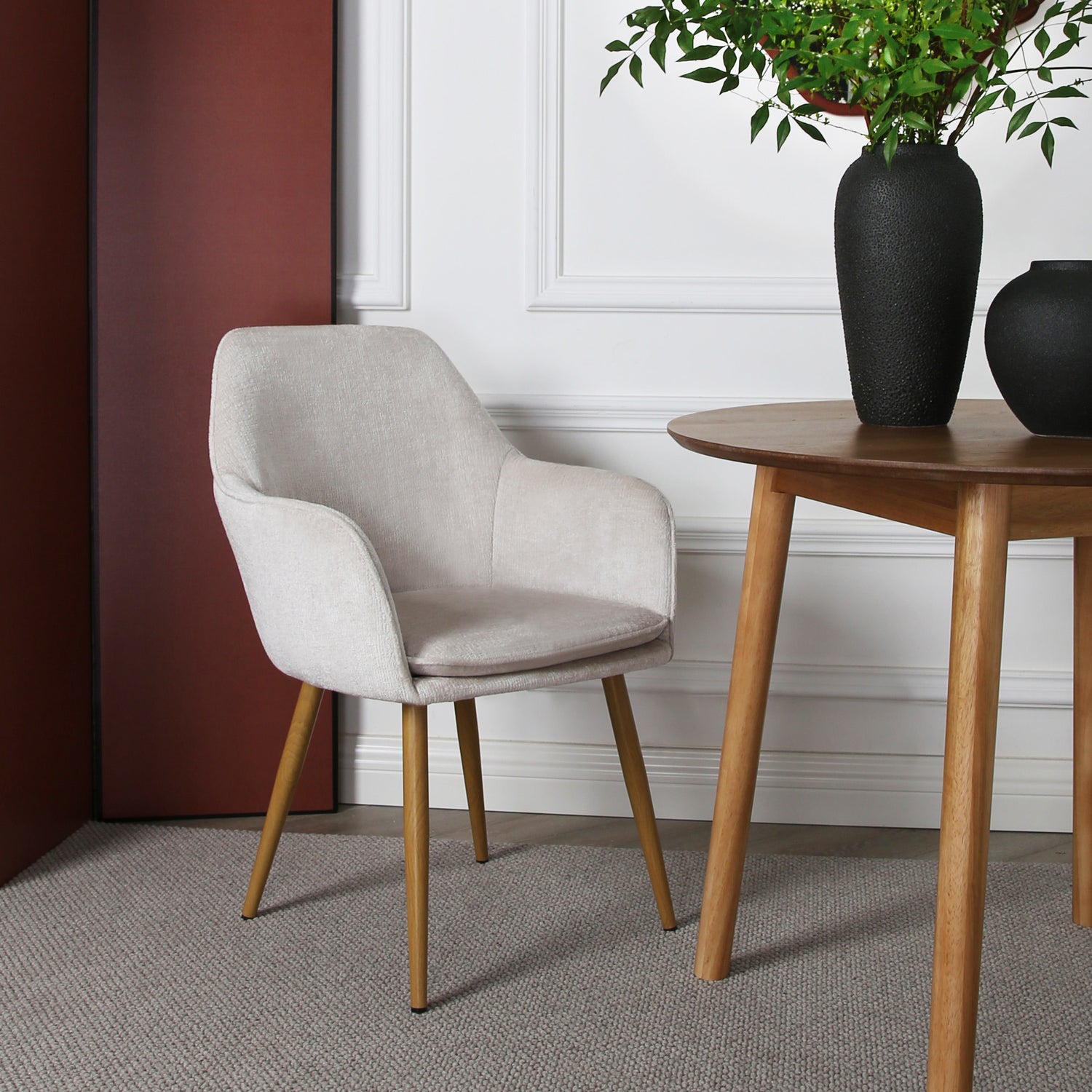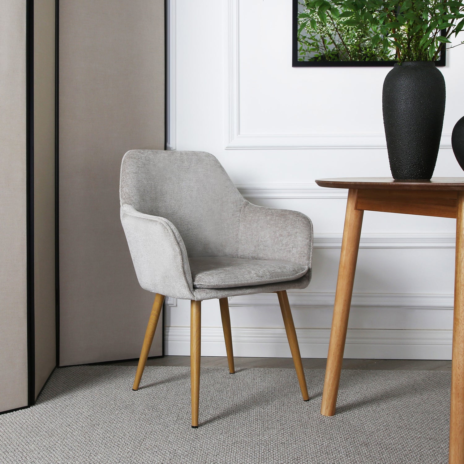 Resting on durable metal legs finished in ash, walnut, or black, the chair is both sturdy and visually appealing. Available in a selection of colors, from classic grey and beige to dark green and orange, this upholstered armchair suits a variety of decor styles, from modern and minimalist to warm and traditional. The sleek, space-saving design makes this an excellent accent chair for small spaces, providing style without overwhelming the room.
