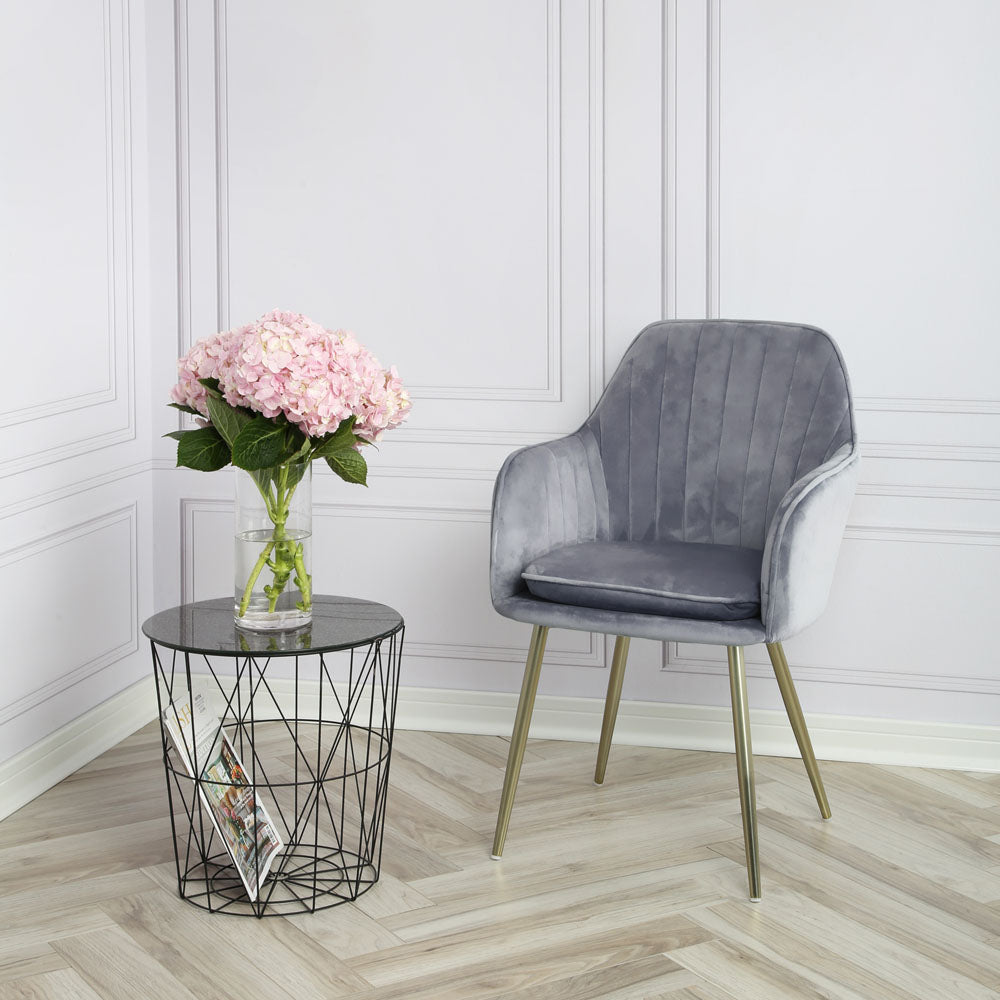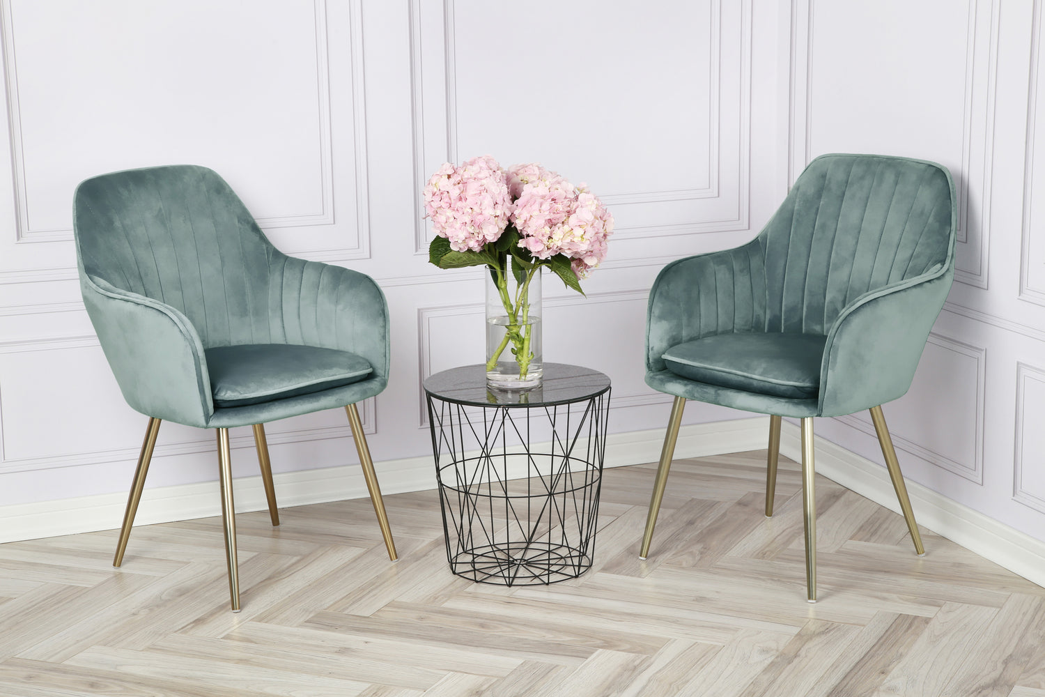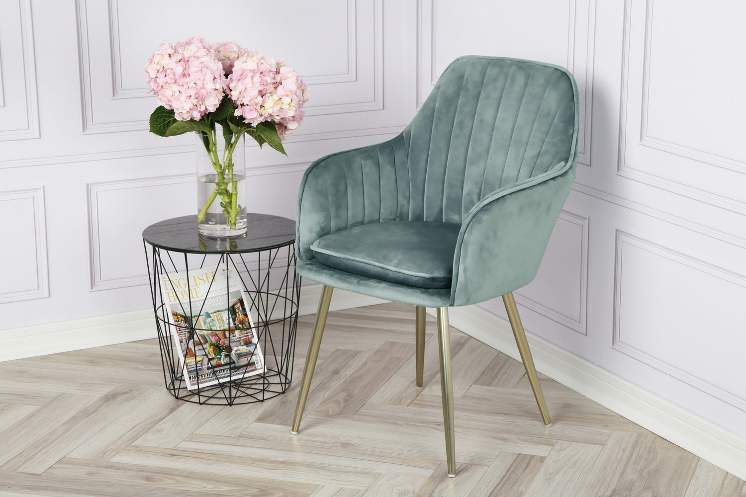 - The legs of the chair are made of steel and have a chrome gold effect, adding a touch of glamour to the design.