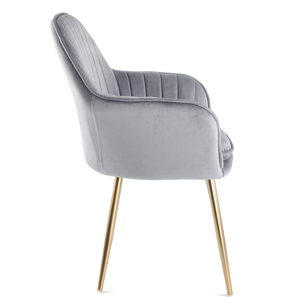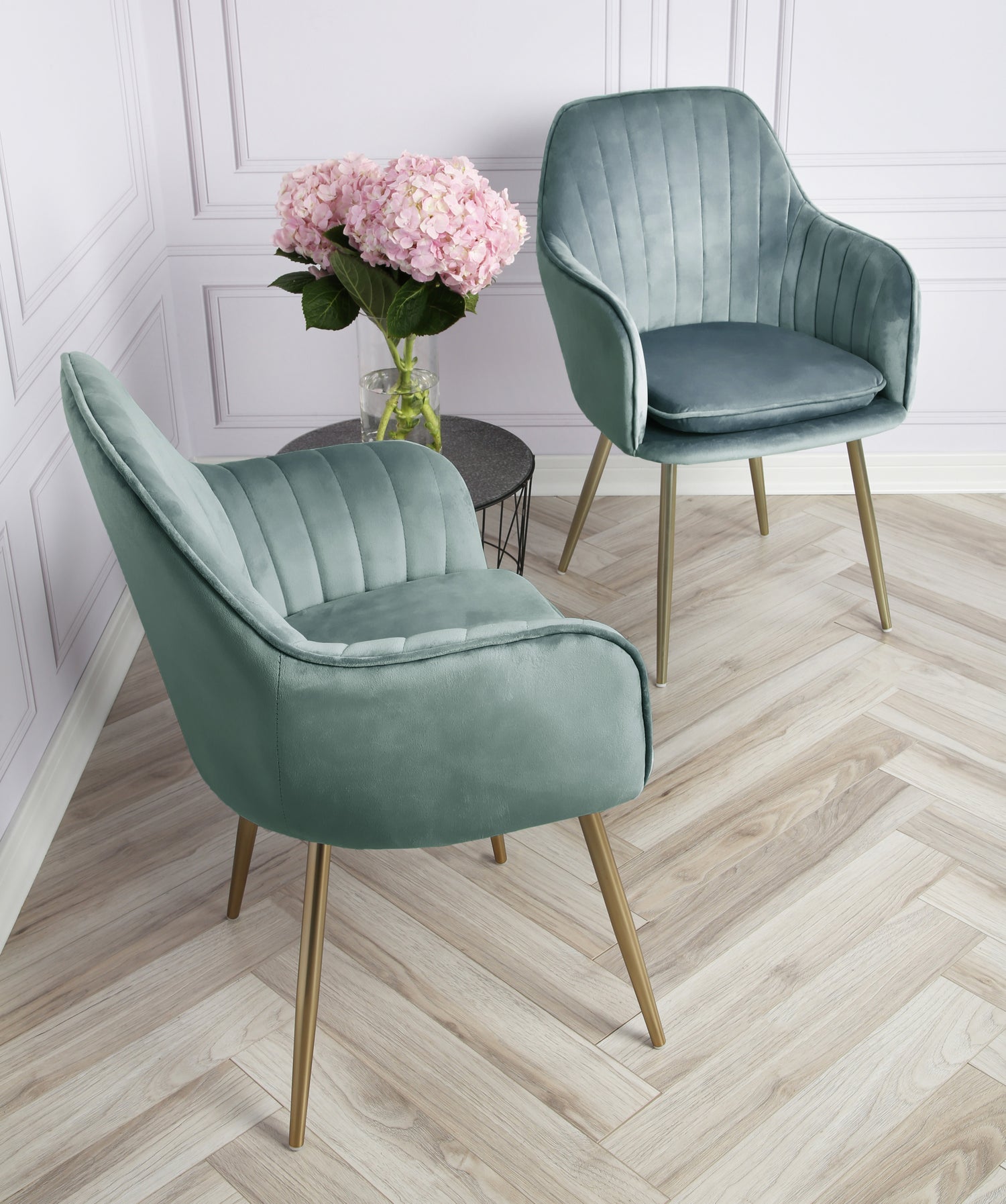The pair of Muse Accent Chairs is the perfect addition to any room in need of a pop of color and sophistication. The chair is available three different colours: violet, grey and light blue. It features a velvet upholstery that is both eye-catching and stylish. The golden legs add a touch of glamour and elegance to the overall design. Silver legs are also available in the grey option.