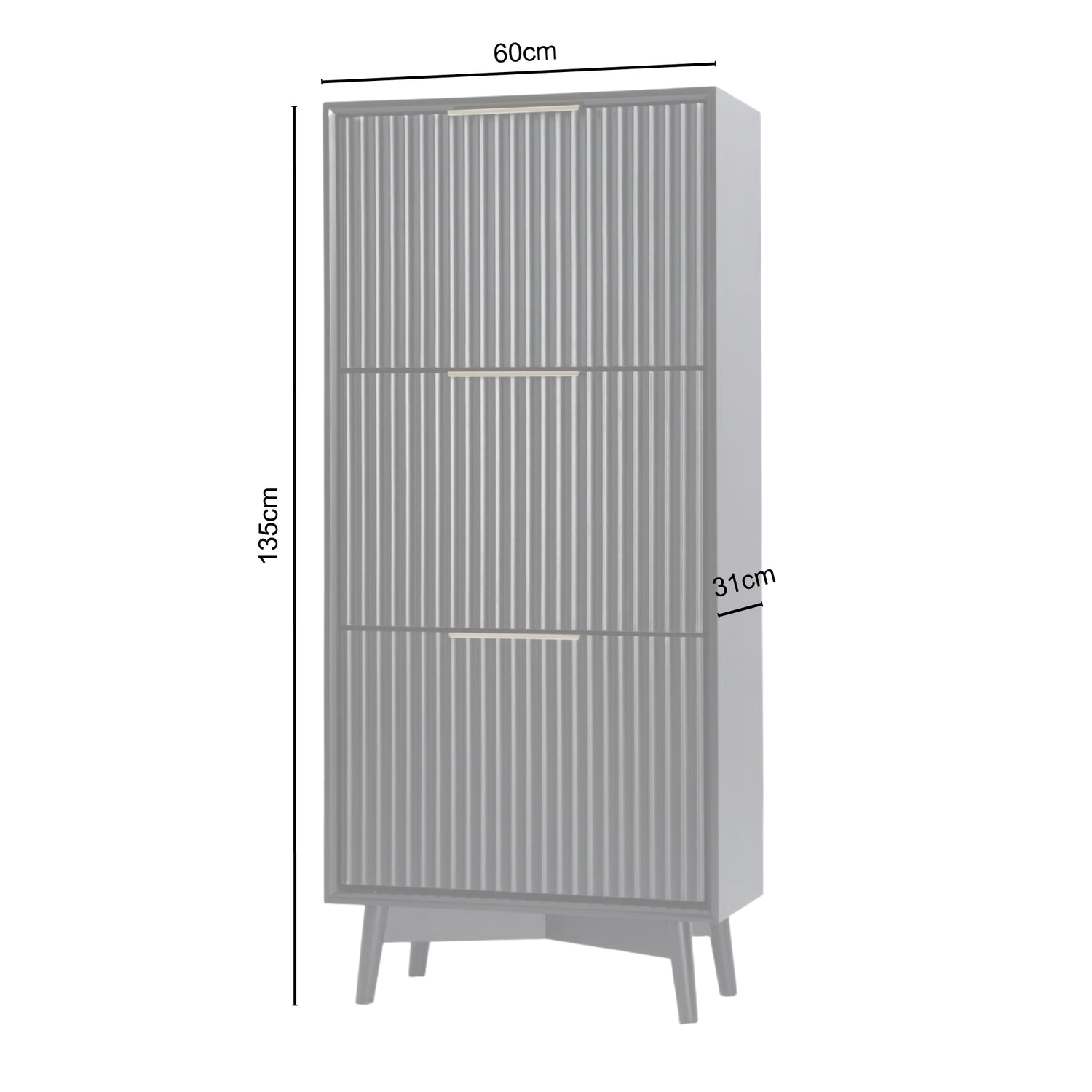 Its thin shoe cabinet design is perfect for smaller homes, apartments, or tight spaces, while the fluted detailing and elevated frame give it a sleek, mid-century modern edge. Choose the black shoe cabinet for a bold, dramatic statement or the grey shoe cabinet for a soft, neutral accent.