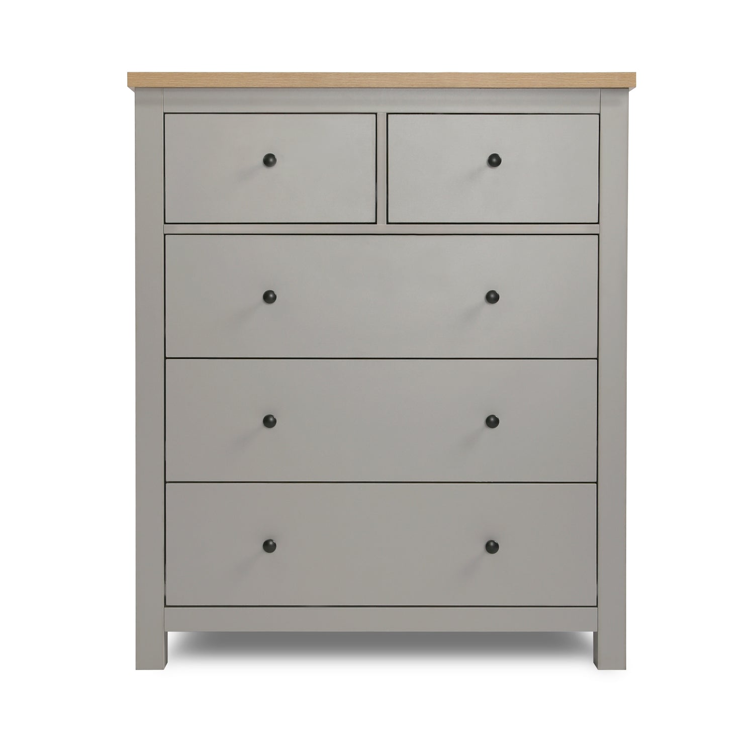 Wiltshire Chest of 5 Drawers - Grey with Wooden Top