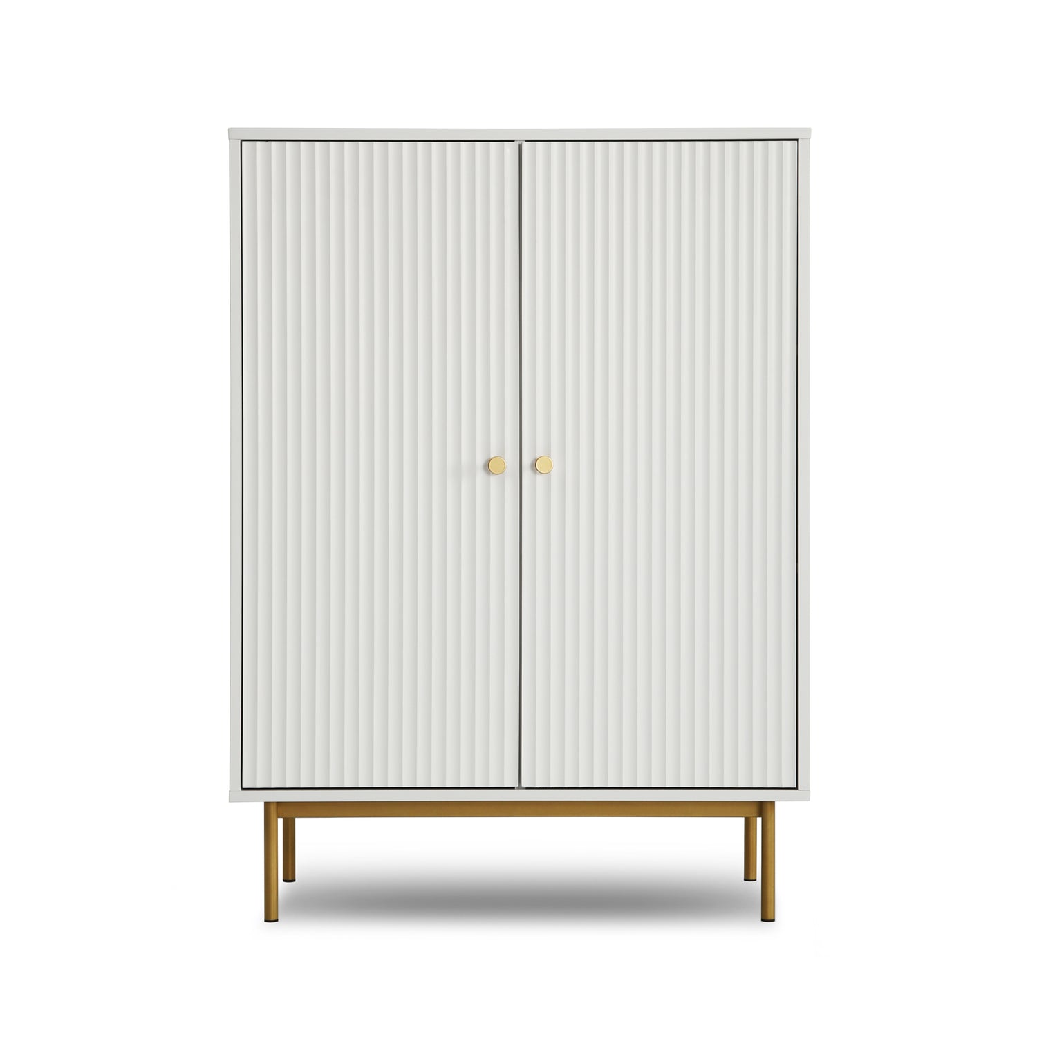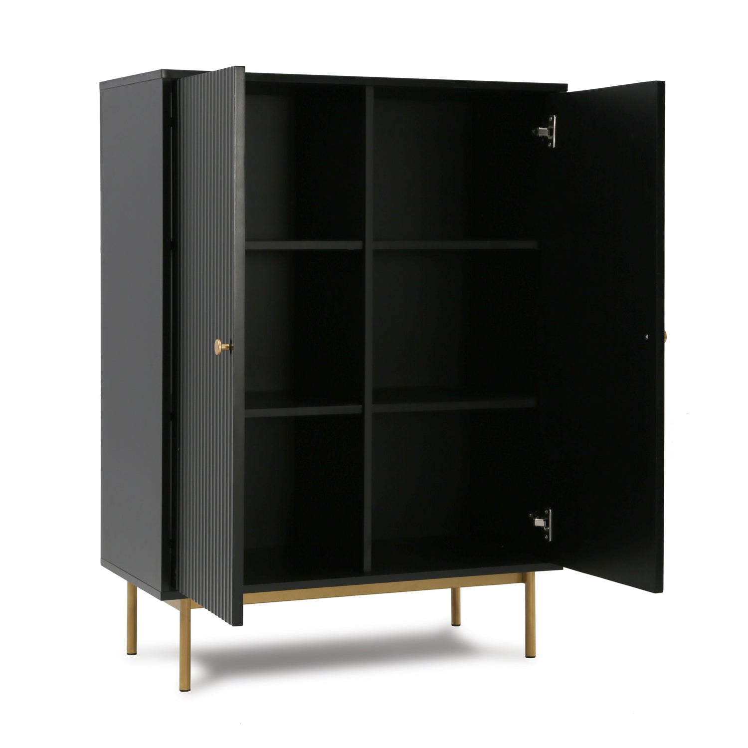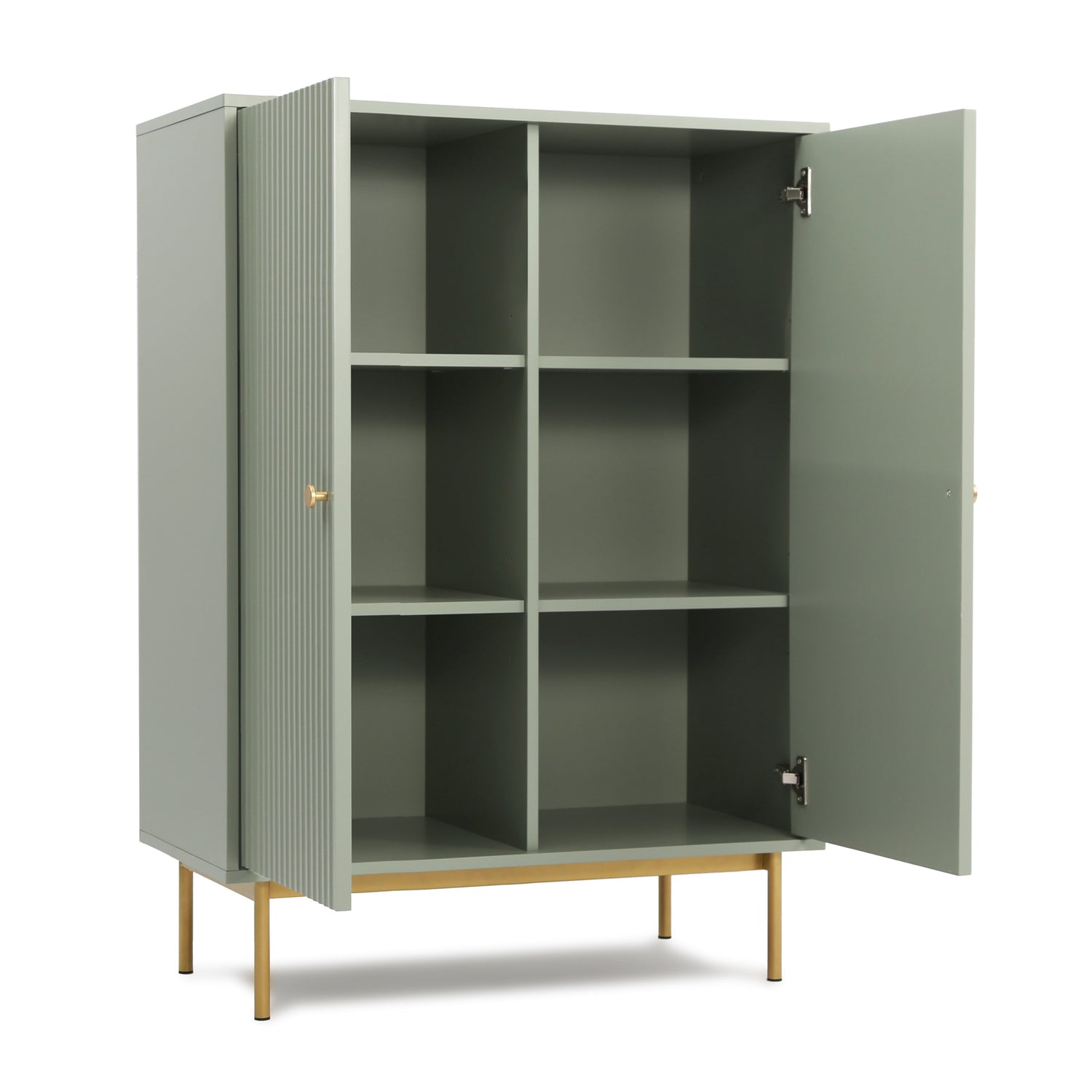 The Devon storage cabinet is an elegant and practical solution for your storage. Constructed from a durable MDF frame, this highboard cabinet storage features a matte PU paint finish available in four classic colours: white, black, grey, and sage. The storage cabinet with doors provides ample space to store a variety of items. The metal handles and legs, finished with a powder coating, add a touch of modern sophistication.