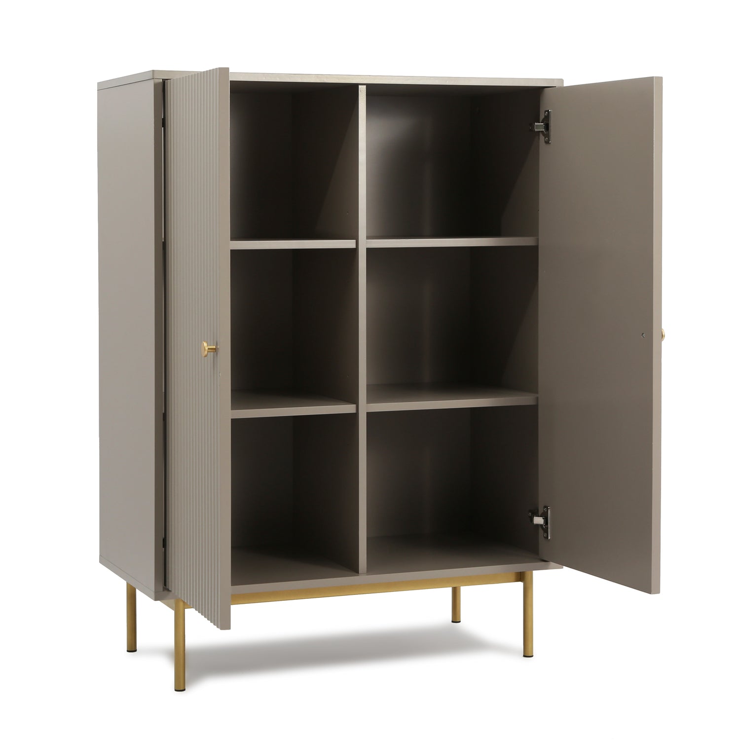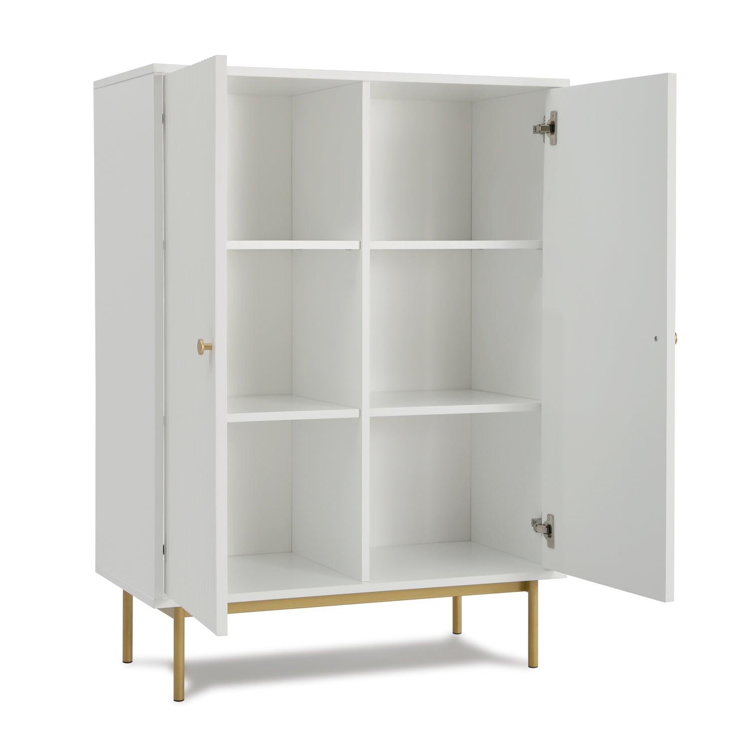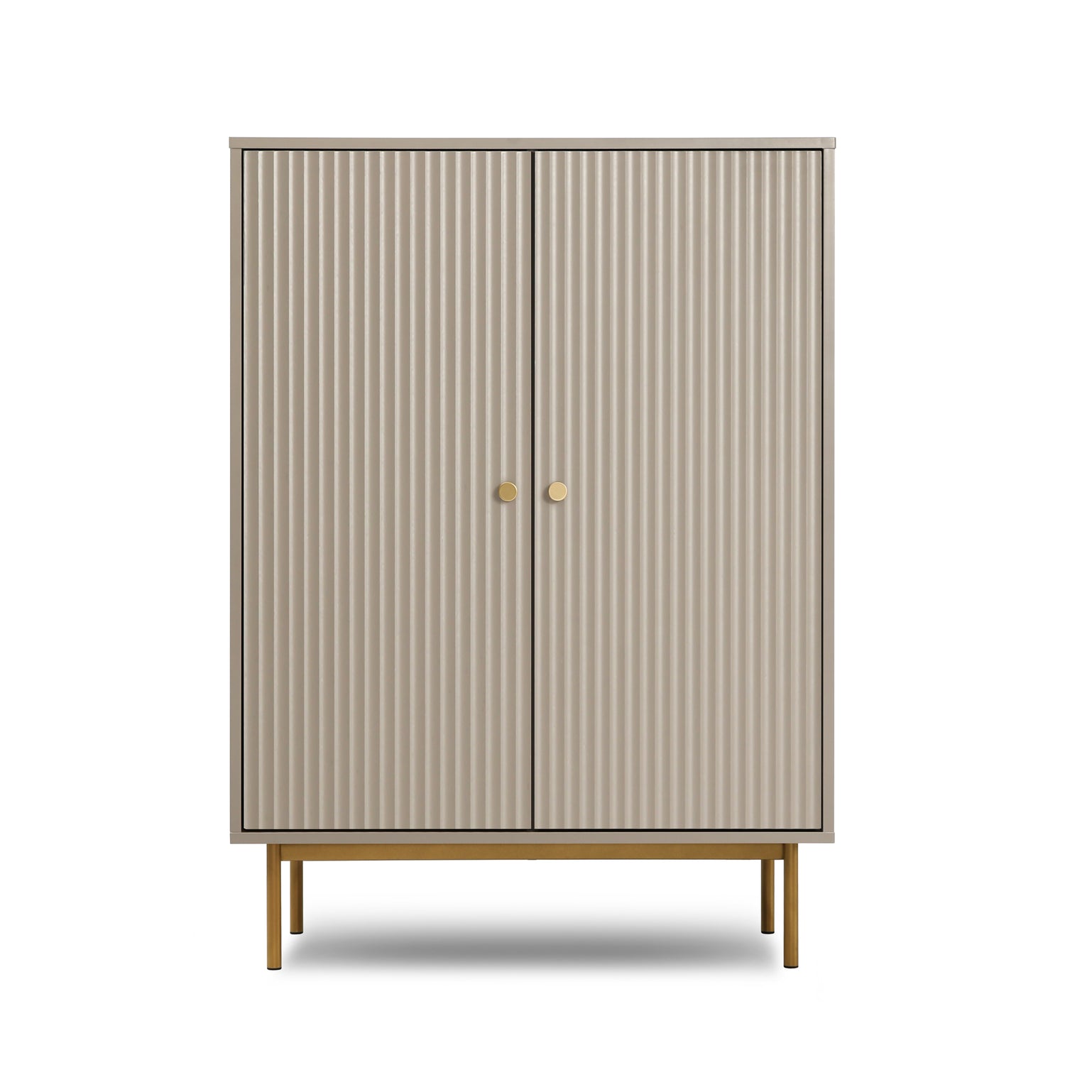 The Devon storage cabinet is an elegant and practical solution for your storage. Constructed from a durable MDF frame, this highboard cabinet storage features a matte PU paint finish available in four classic colours: white, black, grey, and sage. The storage cabinet with doors provides ample space to store a variety of items. The metal handles and legs, finished with a powder coating, add a touch of modern sophistication.