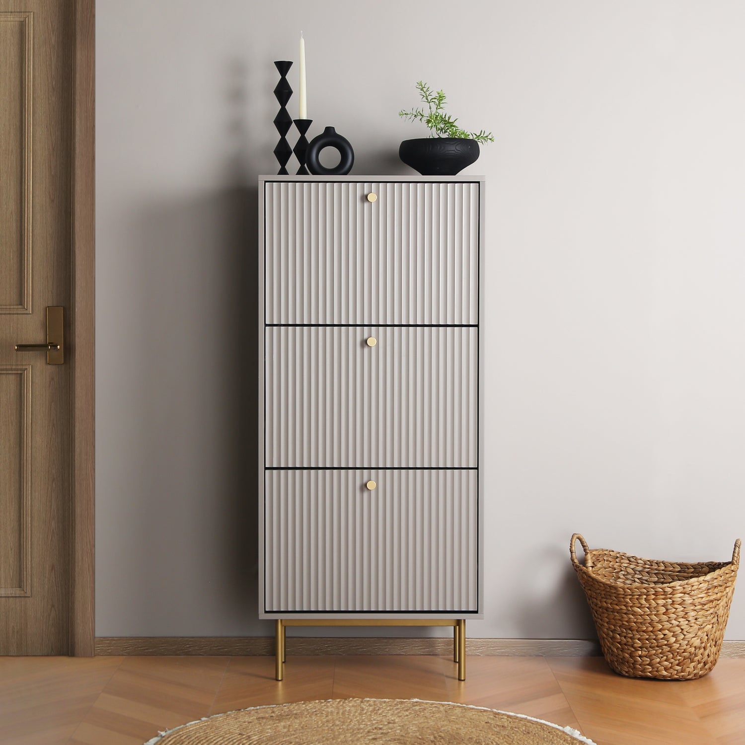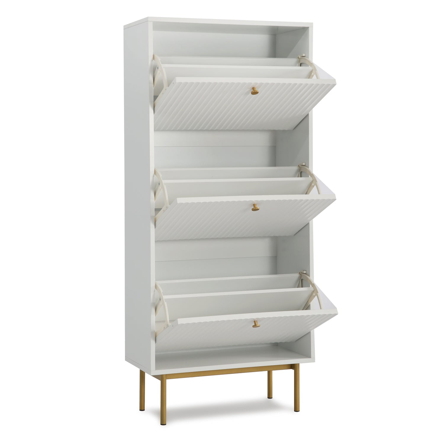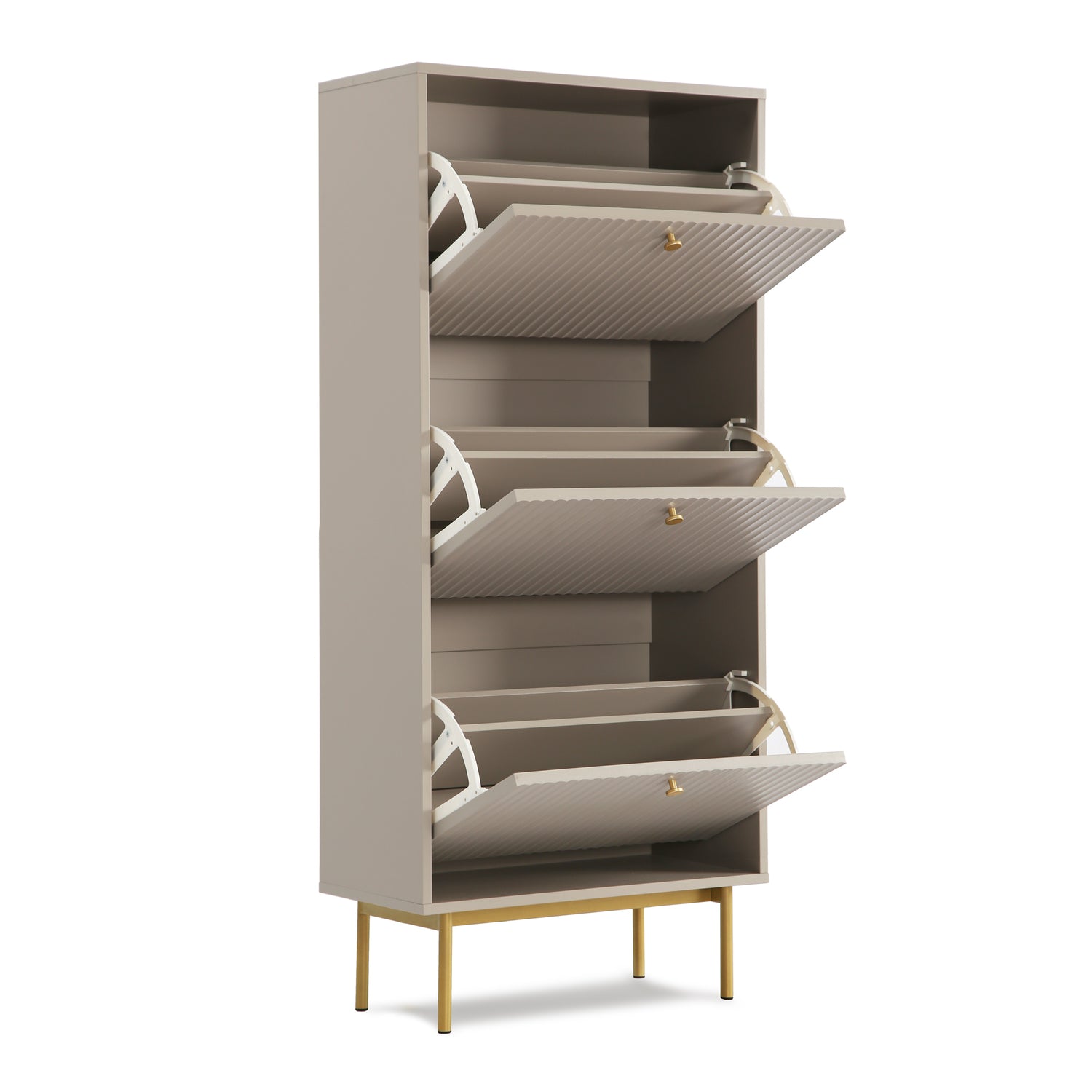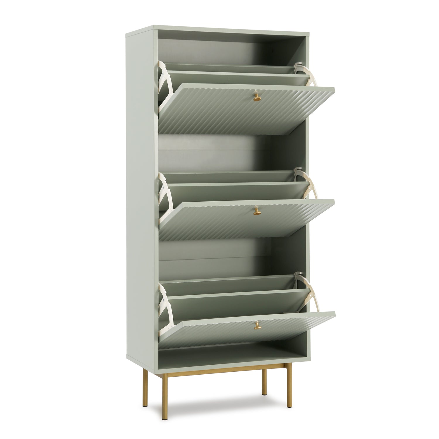 This tall shoe cabinet design maximises vertical space, making it an ideal shoe storage vertical solution for smaller areas. The shoe cabinet storage options cater to various needs, whether for a large family or a single user with an extensive shoe collection.