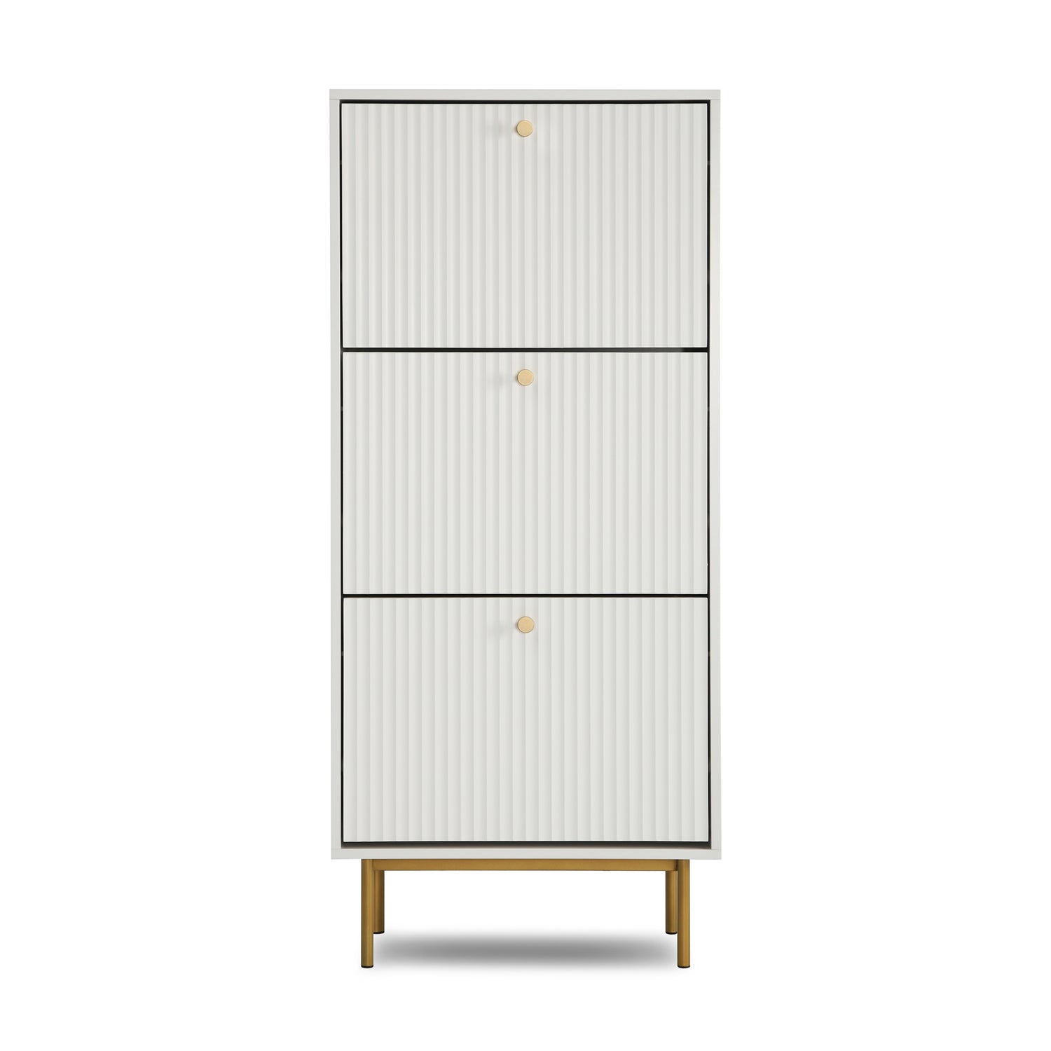The Devon shoe cabinet is an elegant and practical solution for organising your footwear. Constructed from durable MDF and available in four sophisticated colours—white, black, grey, and sage—this shoe cabinet provides ample shoe storage while enhancing your home's decor. The Devon shoe storage cabinet features multiple compartments, allowing you to store shoes neatly and efficiently.