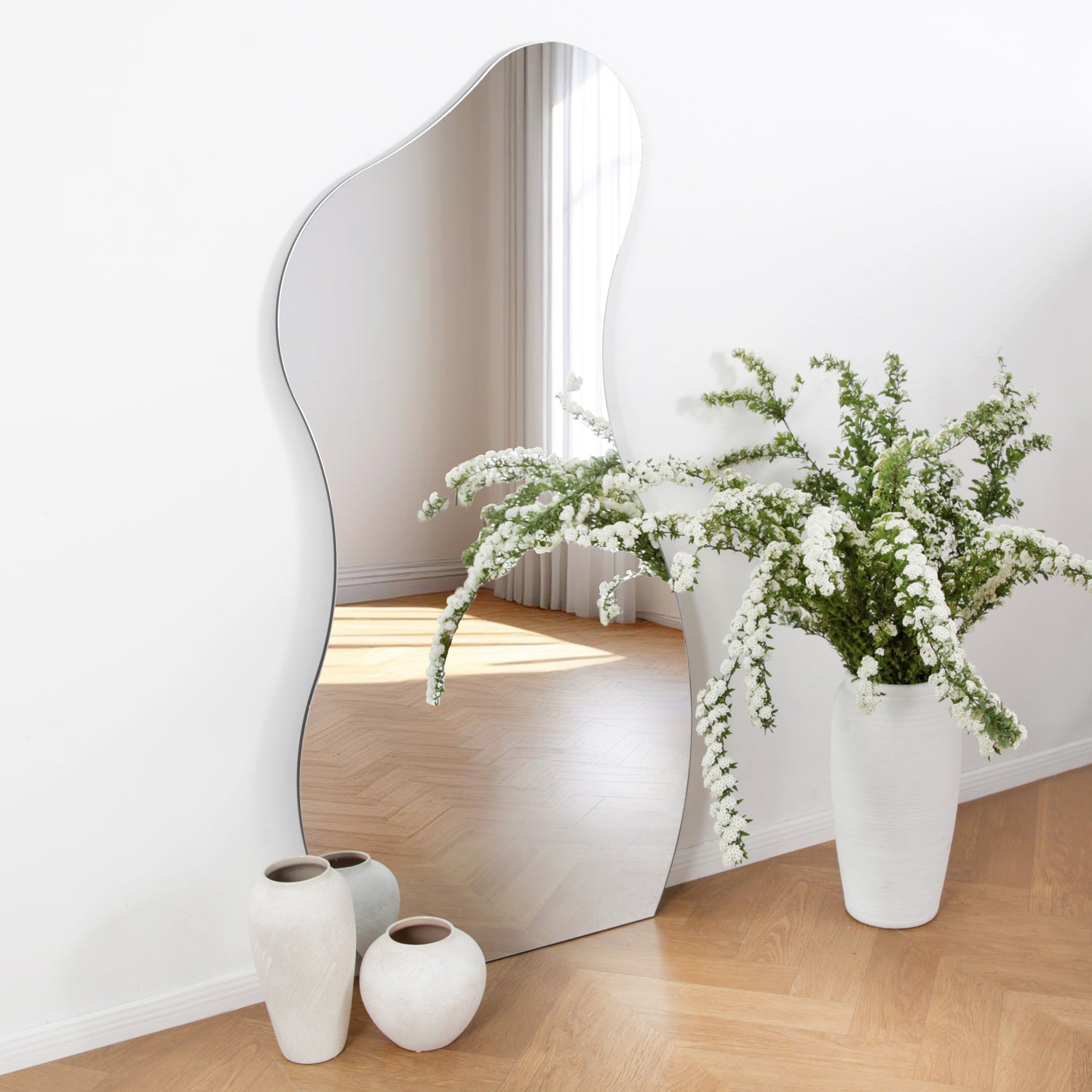 Make a bold design statement with the Lesina full-length pond shape mirror, where sculptural form meets everyday function. With its soft, frameless silhouette and flowing lines, this frameless long mirror adds an artistic edge to any interior—perfect for modern, minimalist, or boho-inspired spaces.