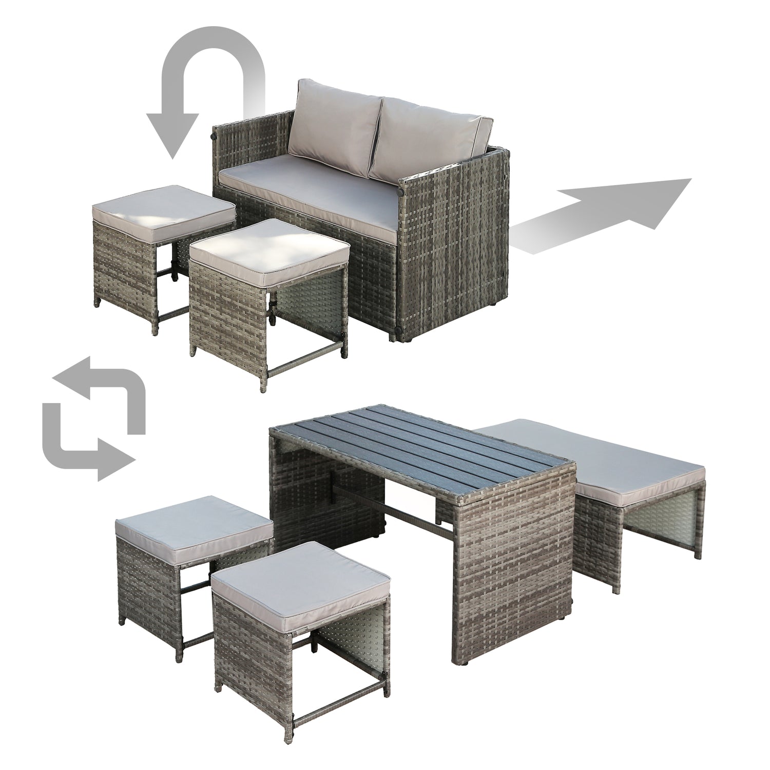 This convertible rattan set can accommodate your demands whether you're hosting a company or spending a peaceful evening outside.