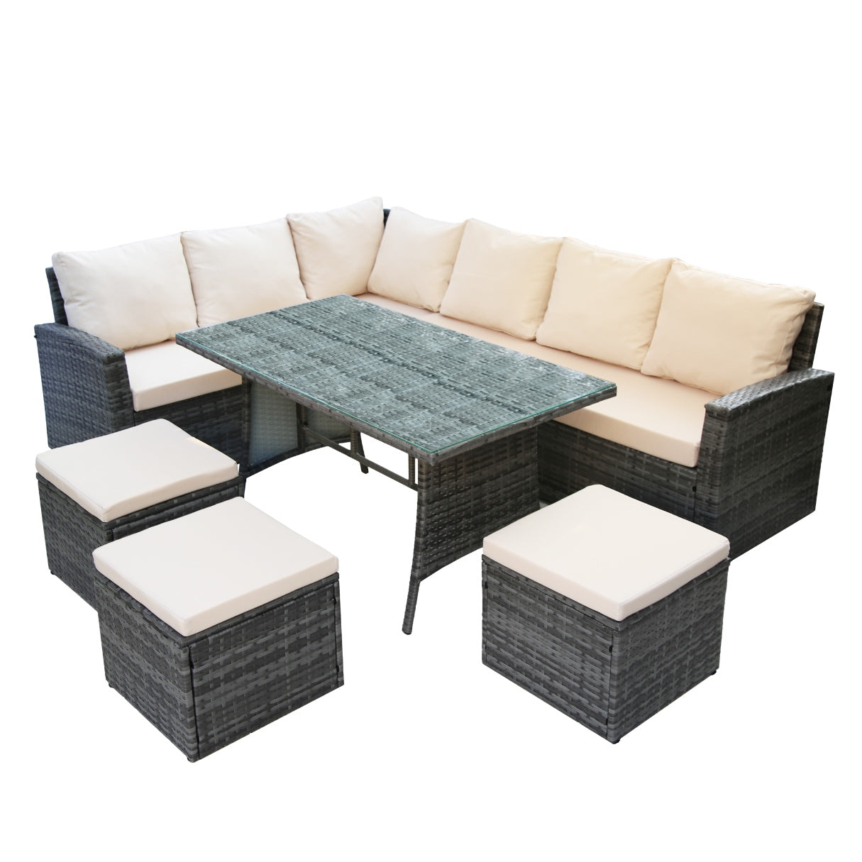 Pelias - Rattan Corner Sofa & Dining Set - 8 Seater