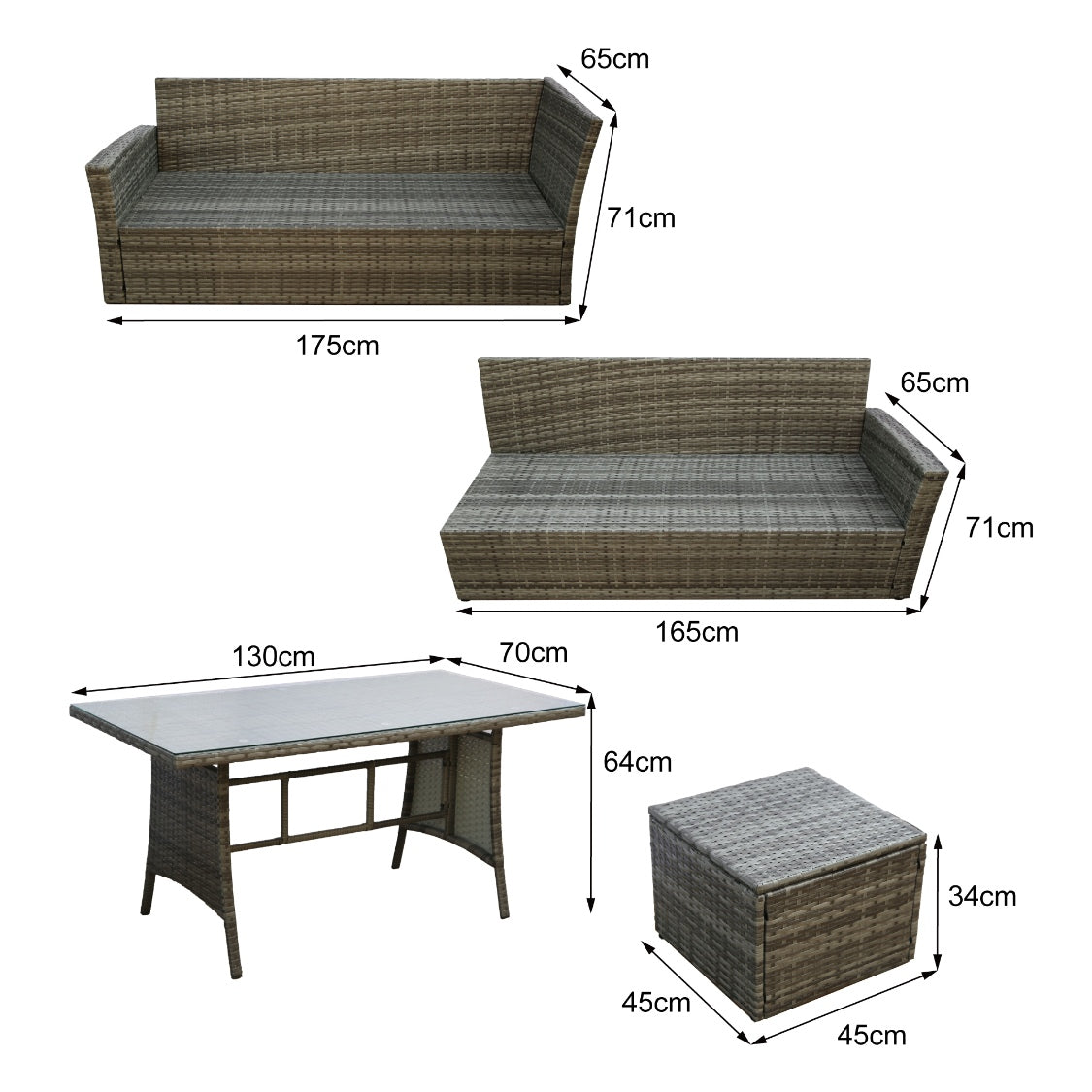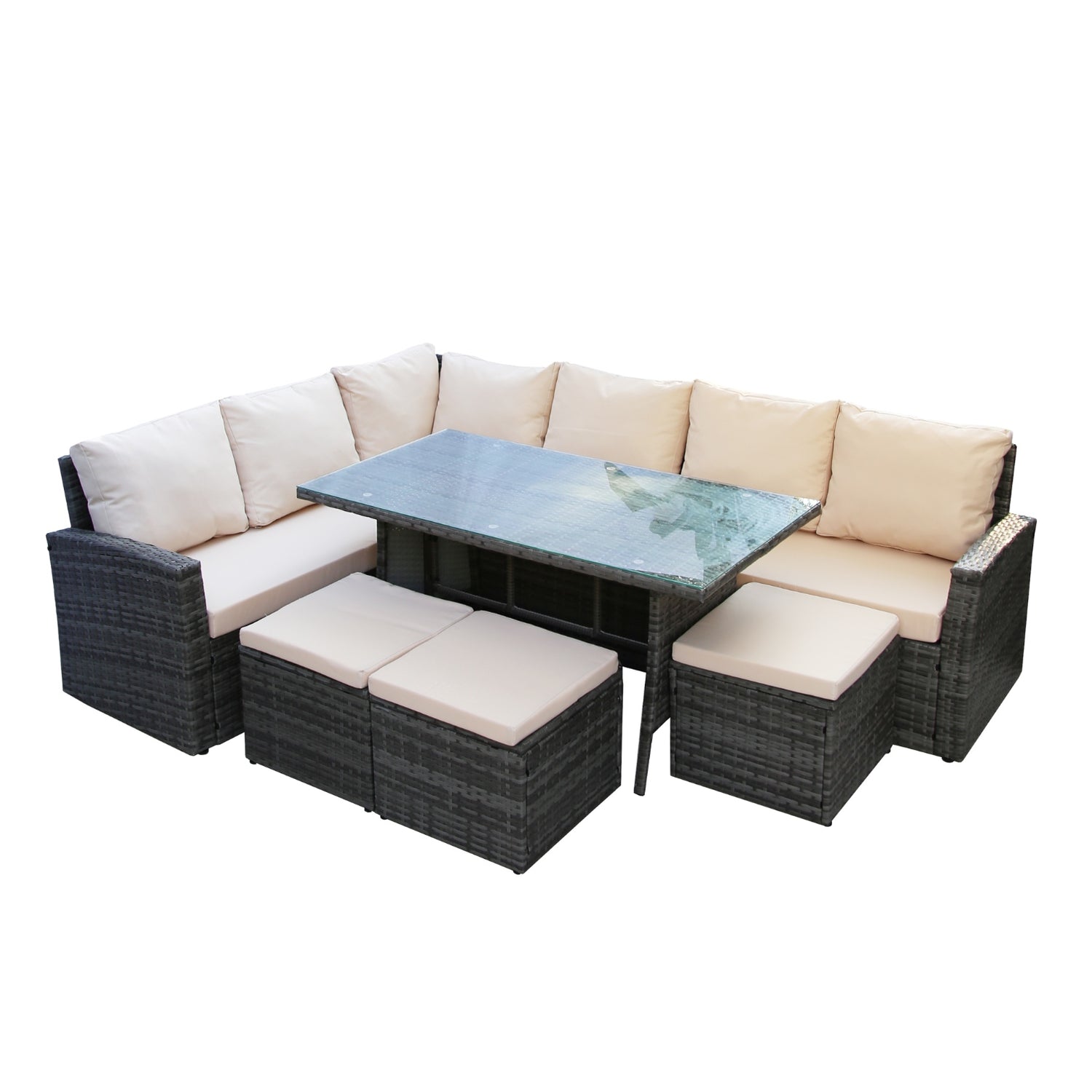 If you love the outdoors and entertaining, then this garden sofa and dining set is a must-have for your patio. The dining table is also made of tempered glass with a smooth, rust free finish that's easy to clean. Its cushions are filled with soft polycotton fabric.