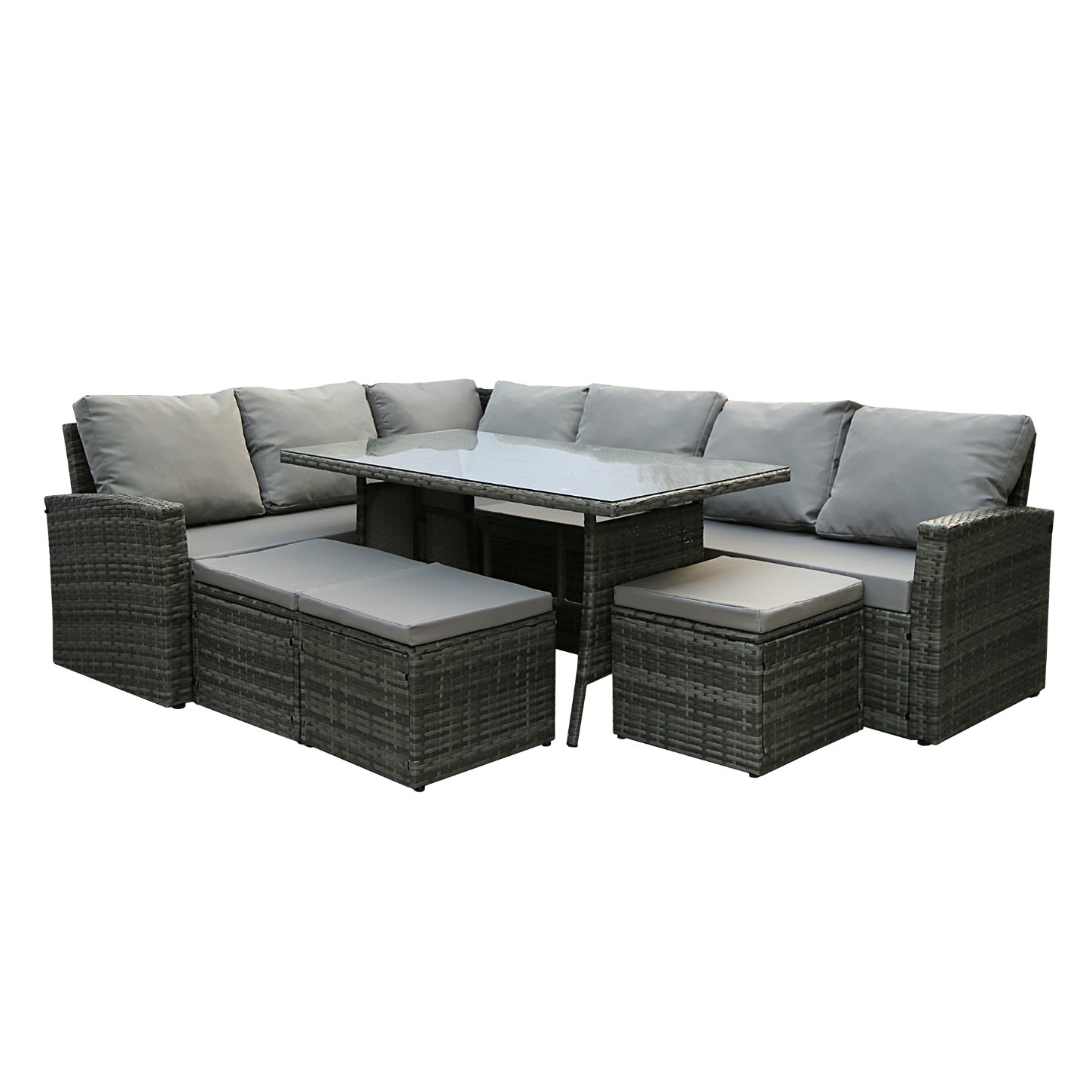 Pelias - Rattan Corner Sofa & Dining Set - 8 Seater - Grey is backordered and will ship as soon as it is back in stock.