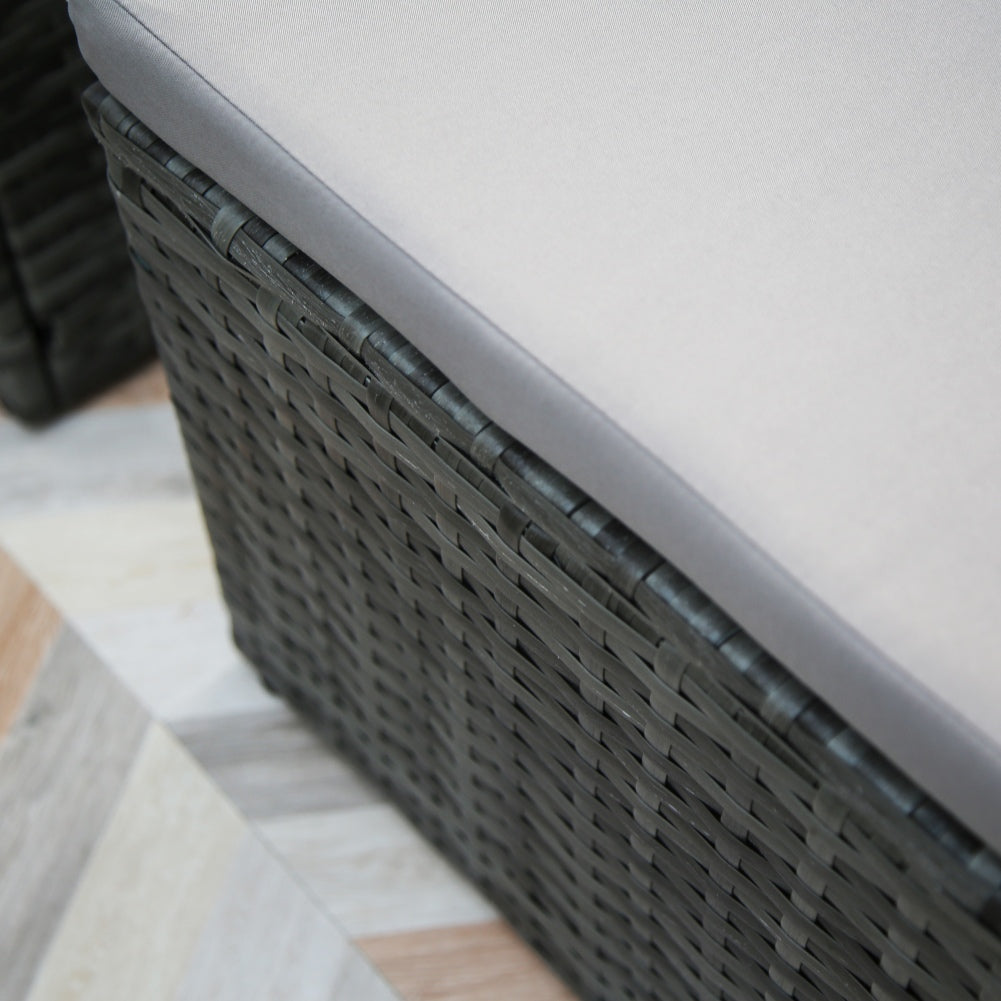 The Pelias 8-seater, is a garden corner sofa set ideal to your outdoor space with its trendy space-saving design. You can seat up to 9 people at once on its highly comfortable cushion seat with a backrest that makes it the perfect rattan garden furniture set for your summer get-togethers. Featuring weather-resistant polyester fabric that requires little maintenance, this stylish rattan garden furniture set is easy to clean and durable enough for everyday use.