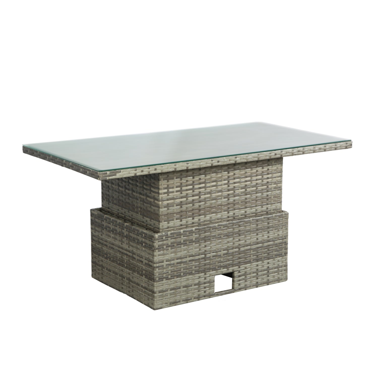 Whether you're hosting a family gathering or a casual get-together with friends, the Pelias corner sofa set combines durability and style. This grey rattan corner sofa set is paired with soft, grey cushions, creating a sophisticated look that will complement any outdoor space. The addition of an adjustable table makes it even more practical for all types of occasions, from dining to lounging.