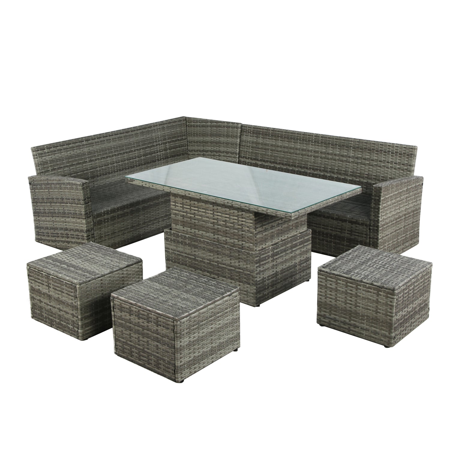 Pelias - Rattan Corner Sofa Set with Rising Table - 8 Seats