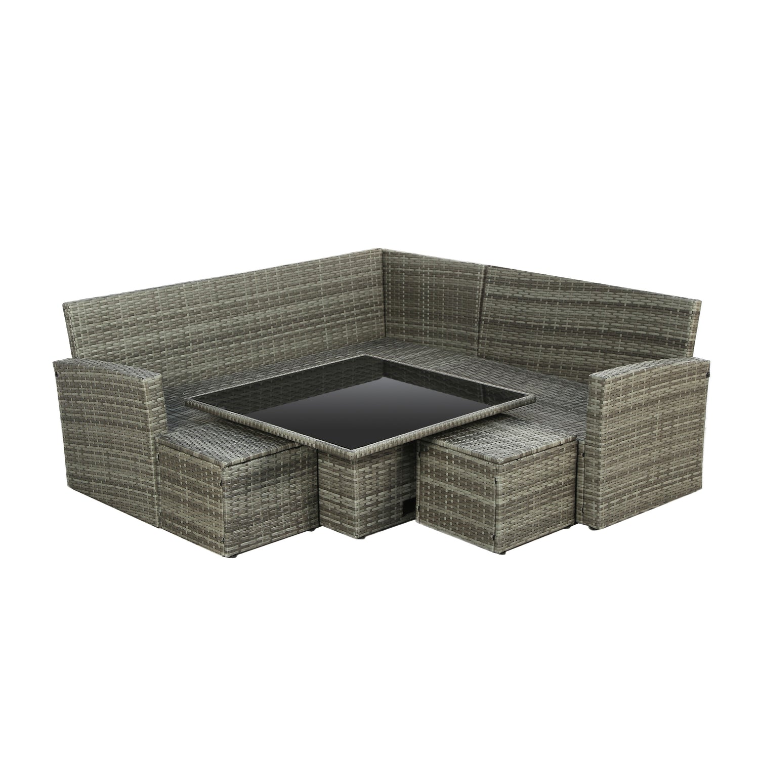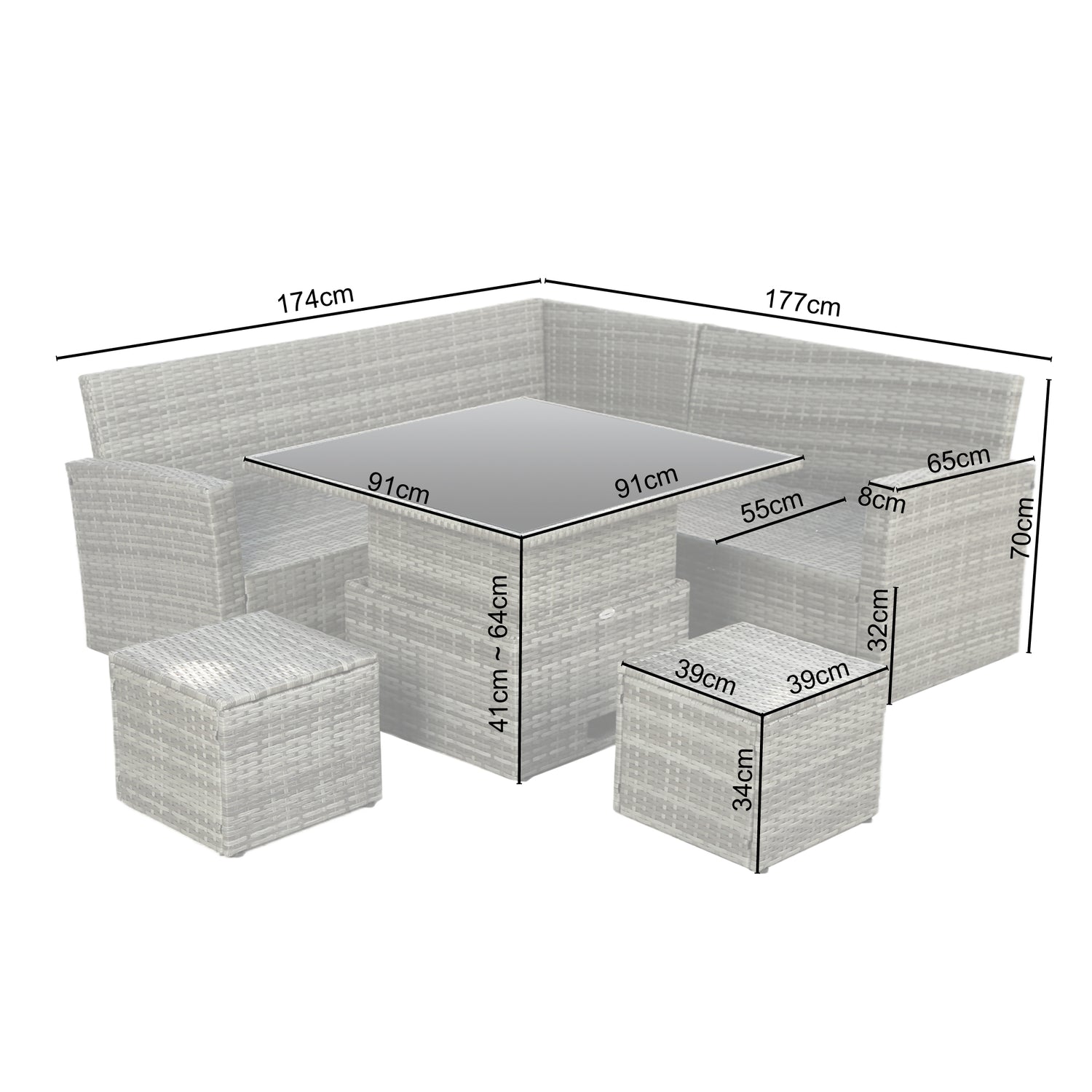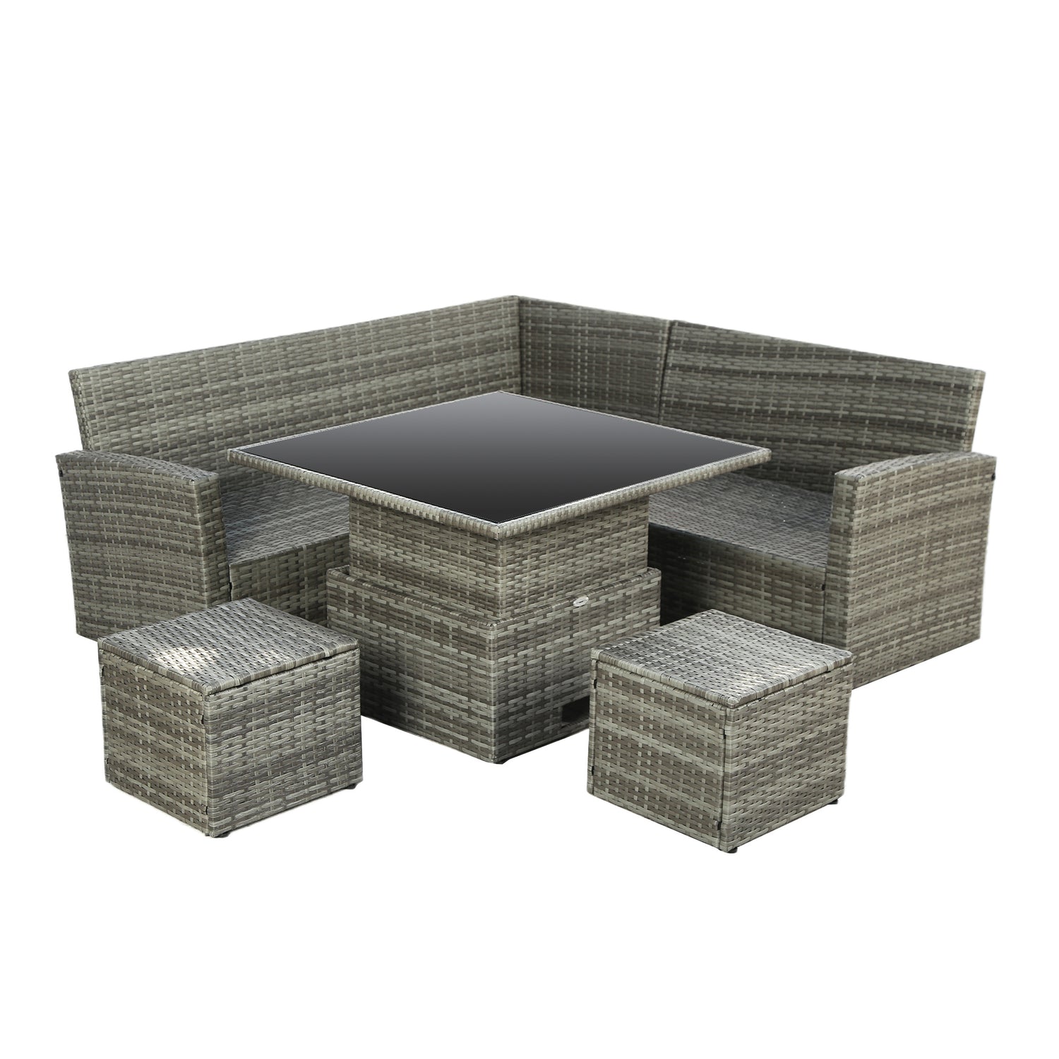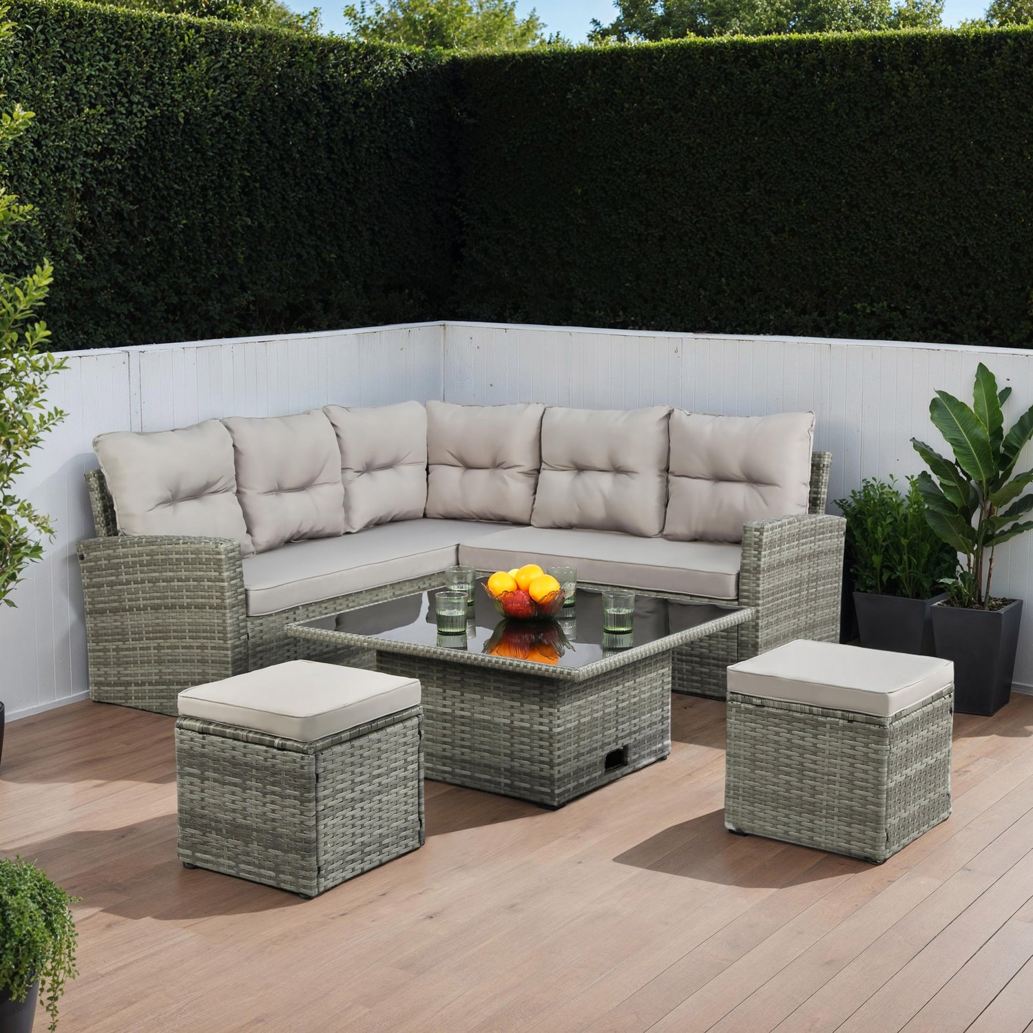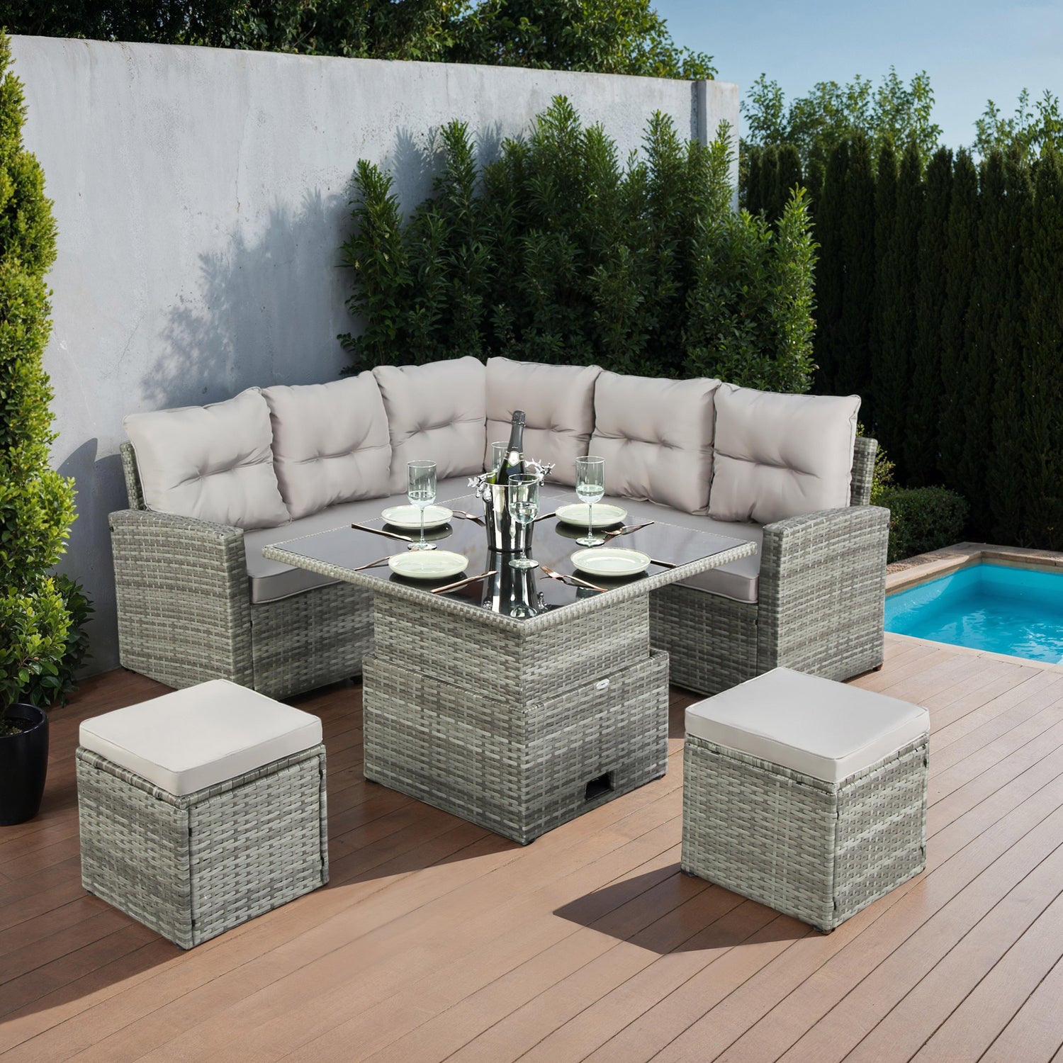 St. Tropez - Garden Corner Sofa with Rising Table - Grey Rattan - 6 Seats