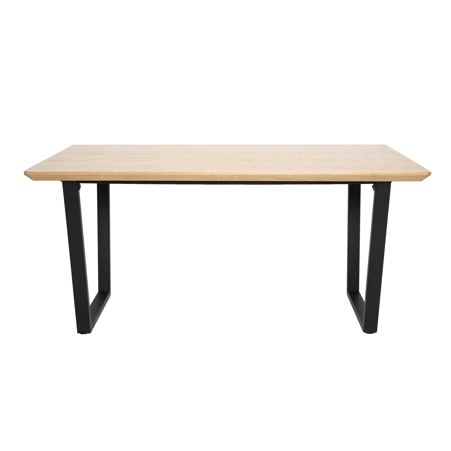 This sleek and sophisticated dining table has a chic contemporary look that is sure to be the centre of attention in your dining area. Its oak veneer table top contrasts wonderfully with the black metal frame, creating a piece that is perfect for any modern home.