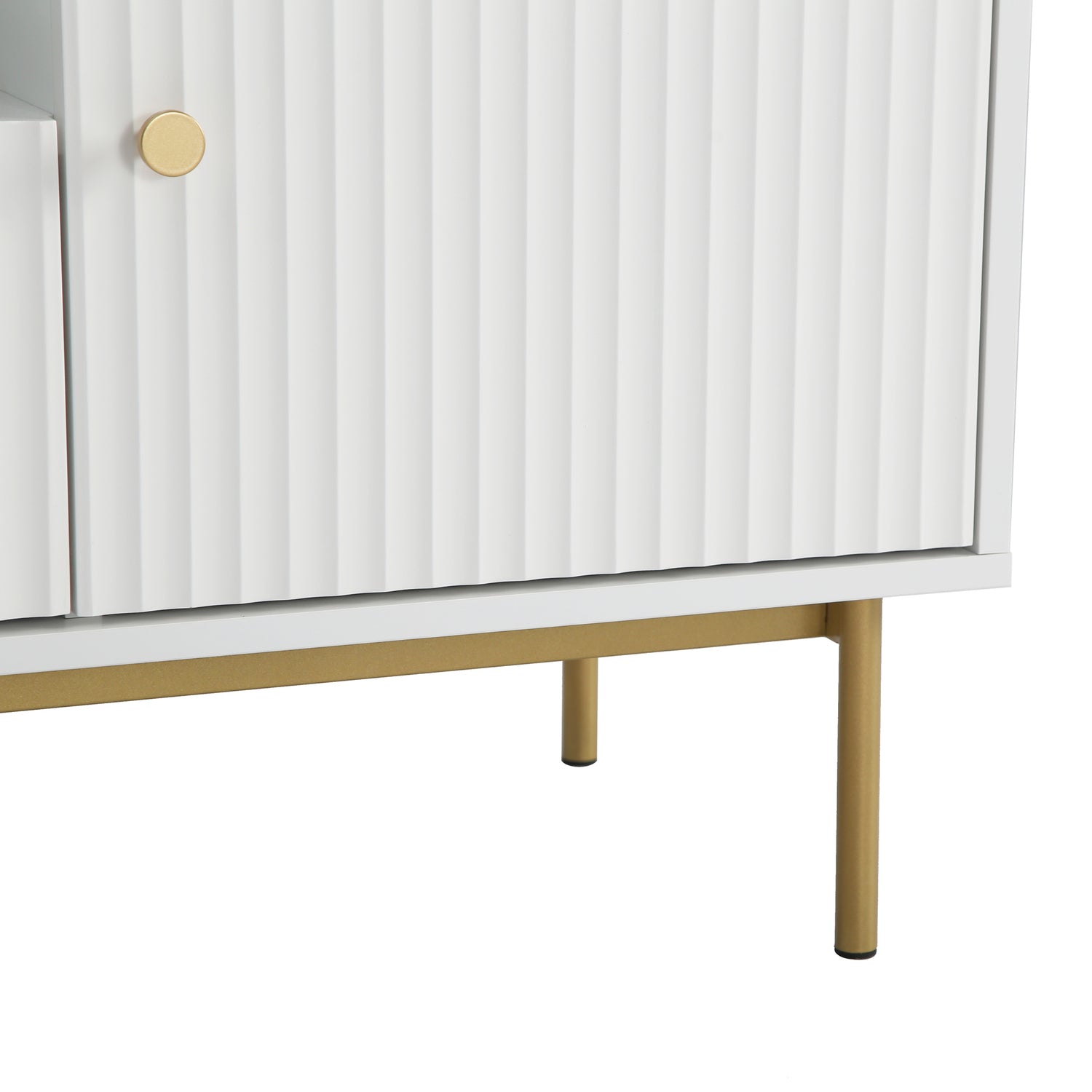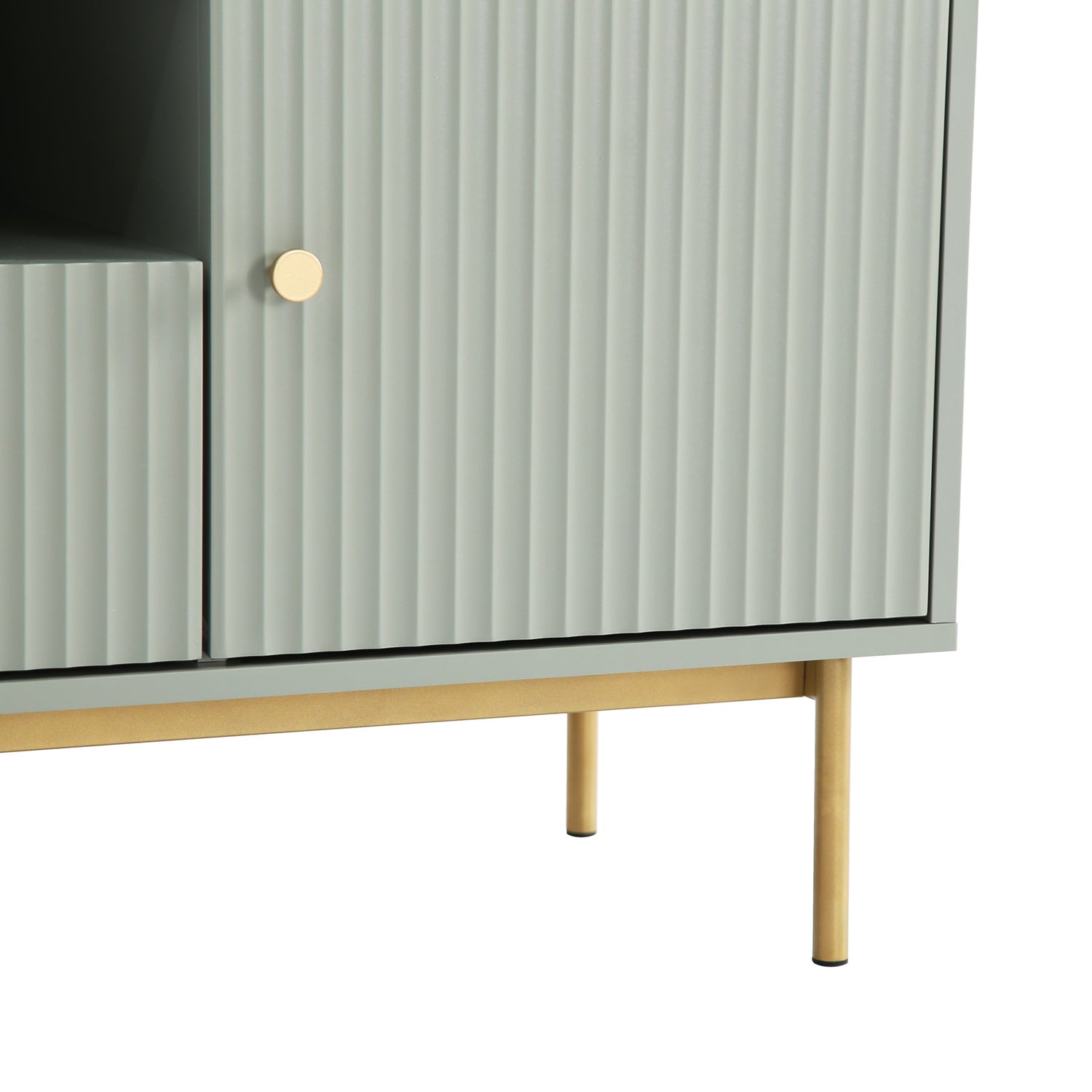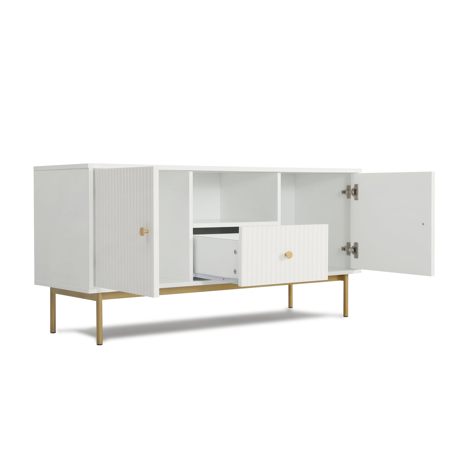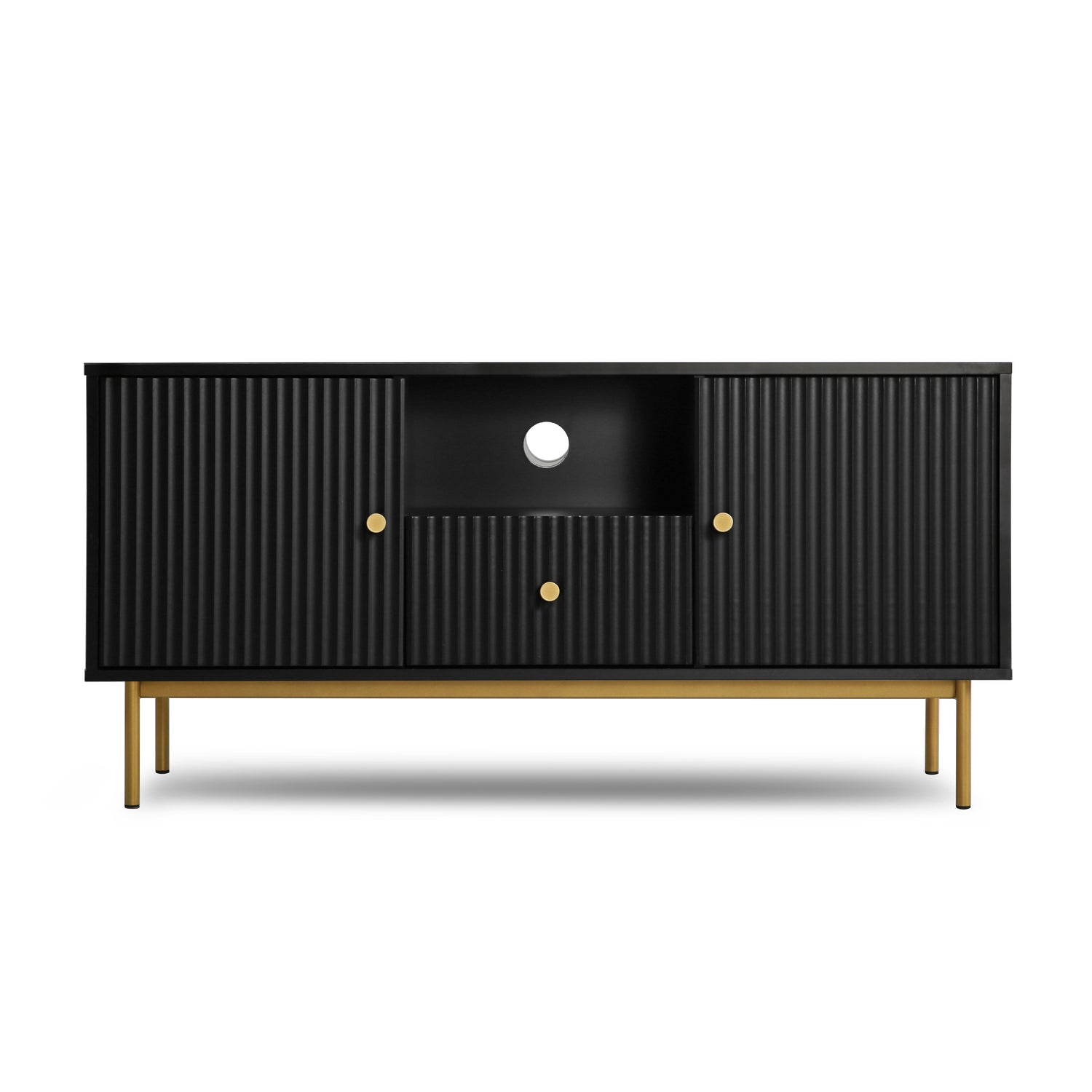 The Devon wide TV media unit is a sophisticated and functional piece designed to enhance your living room. Constructed from a sturdy MDF frame and finished with a matte PU paint, this TV stand is available in four elegant colours: white, black, grey, and sage. The wide TV unit features ample storage options, ideal for organising. The handles and legs are made of metal with a durable powder coating, adding a modern touch and ensuring long-lasting durability.