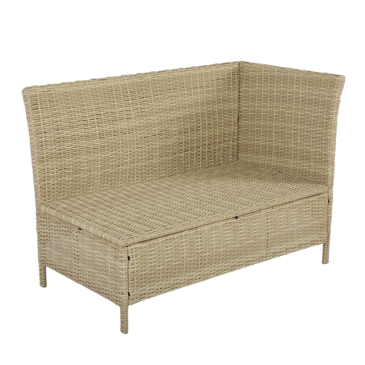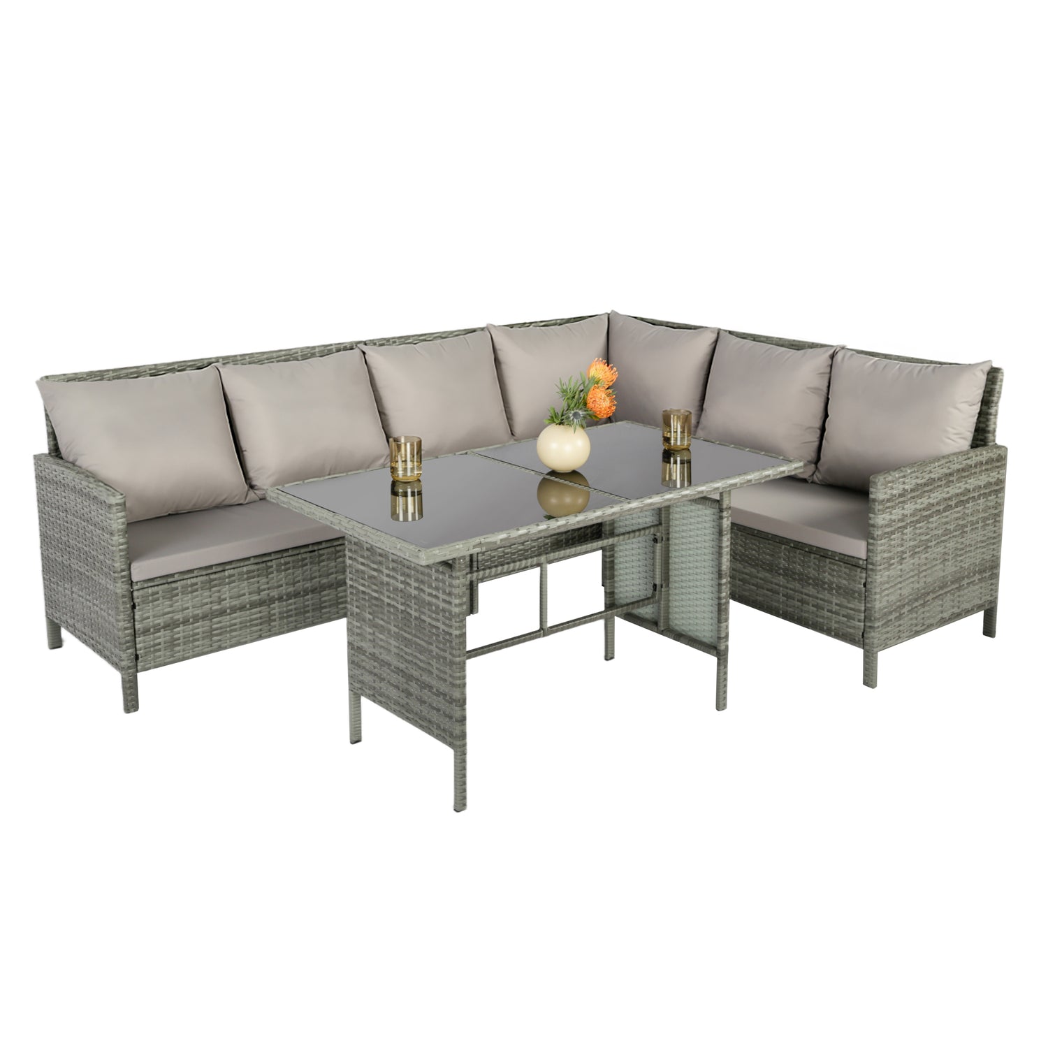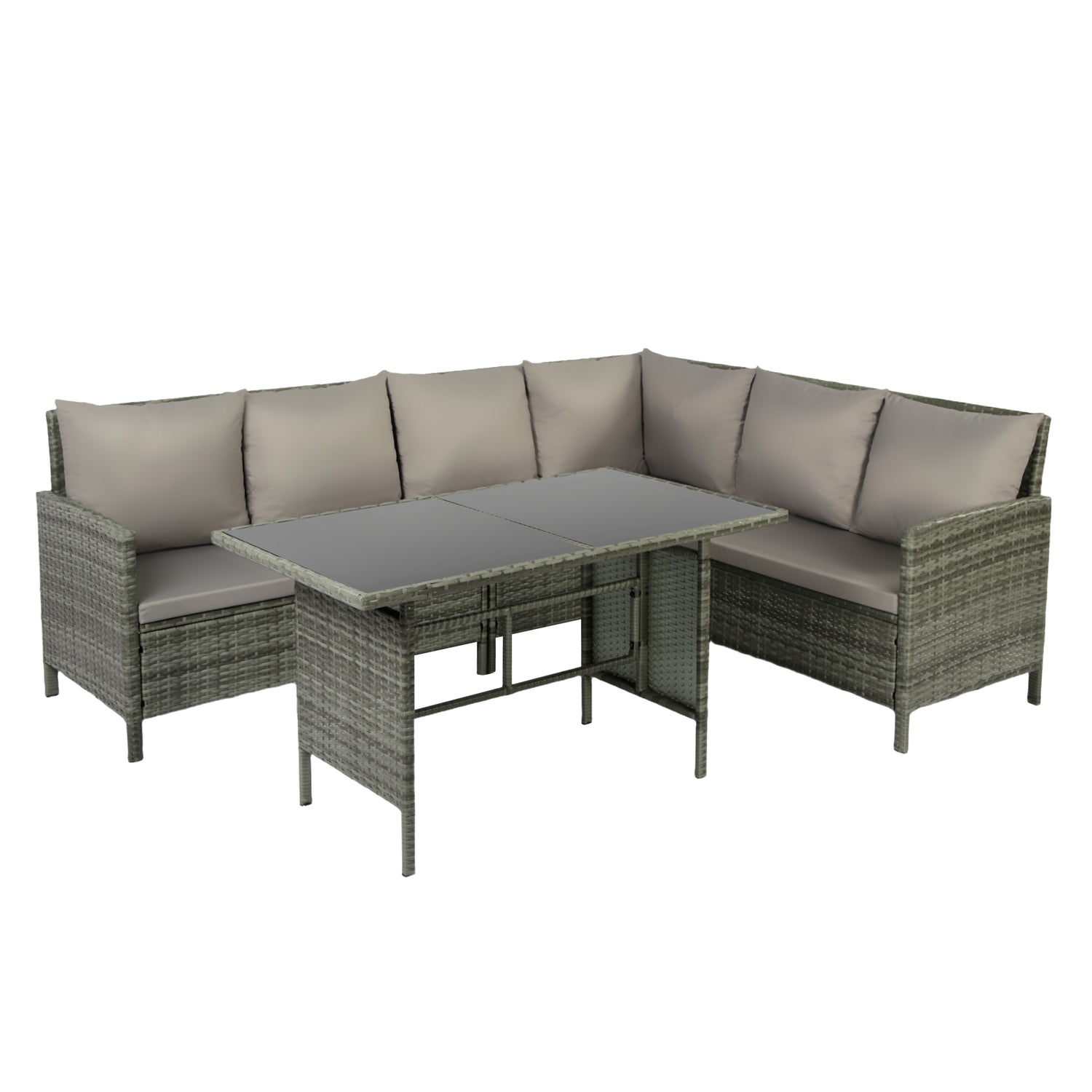 Alia Rattan Garden Corner 6 Seater Outdoor Sofa Dining Set with Glass Table - Natural Brown - Natural is backordered and will ship as soon as it is back in stock.
