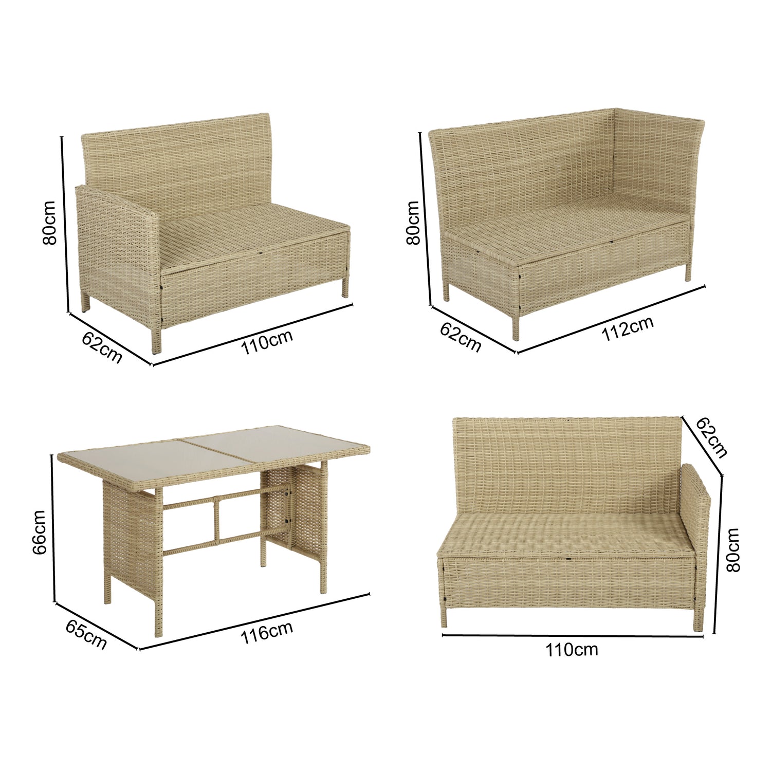 Alia Rattan Garden Corner 6 Seater Outdoor Sofa Dining Set with Glass Table - Natural Brown
