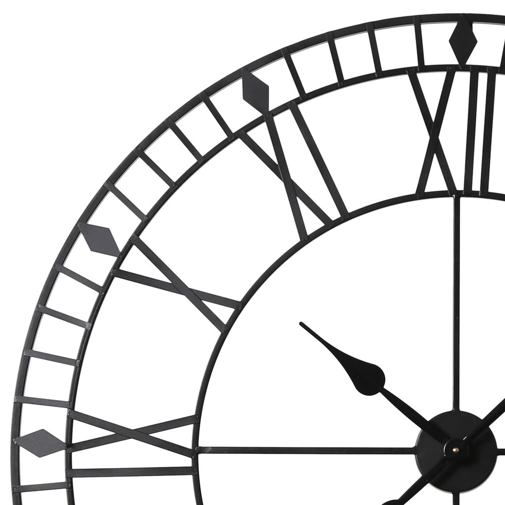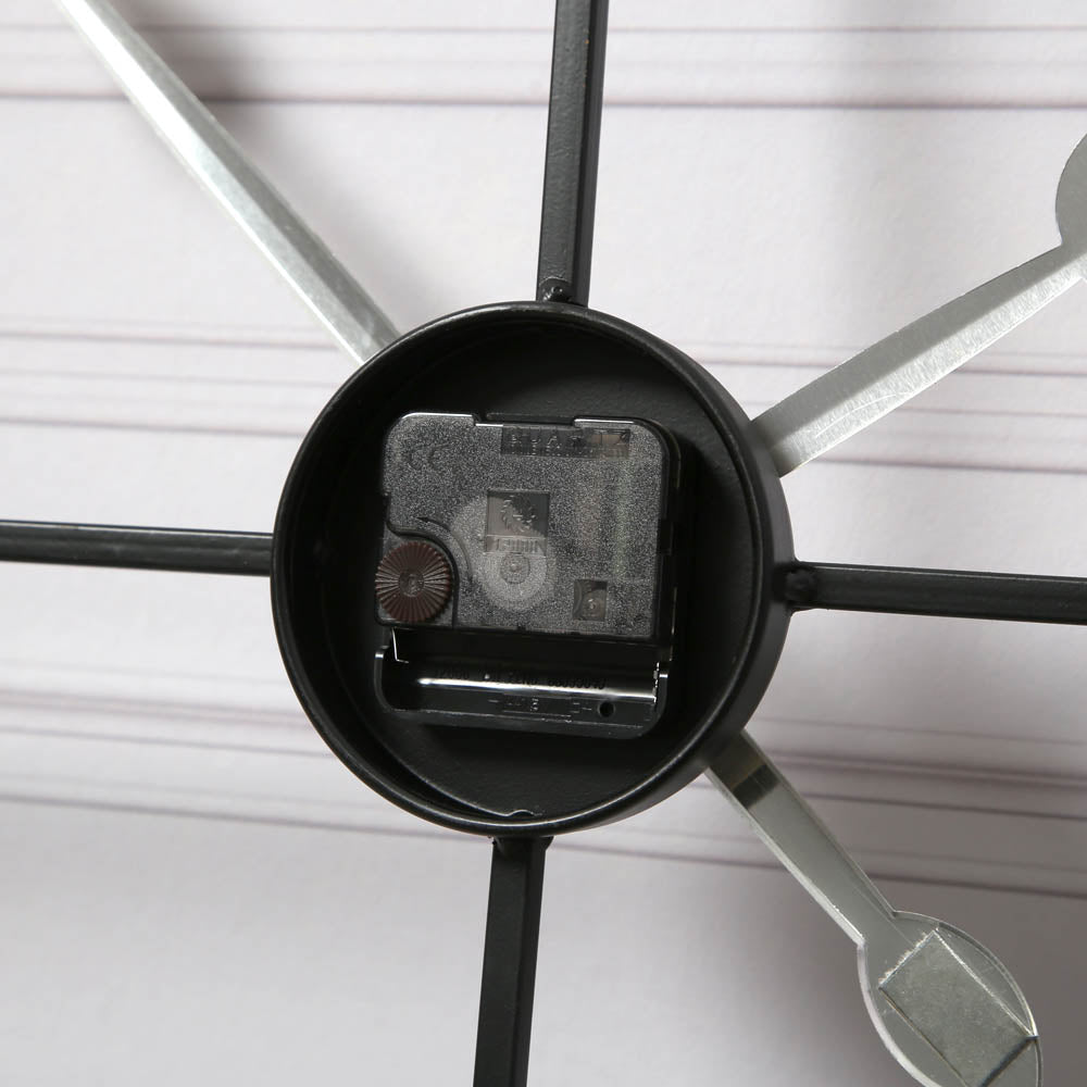 The EOS large skeleton wall clock is a premium wall clock that brings decorative aesthetics to your interiors, in addition to telling the time. With its extra-large roman numeral and minimalistic, circular design it will add a stylish touch to any space. Made from metal, this skelleton wall clock with roman numeral is ideal for anyone looking for a wall clock that runs smoothly and without interrupting peaceful and quiet moments.