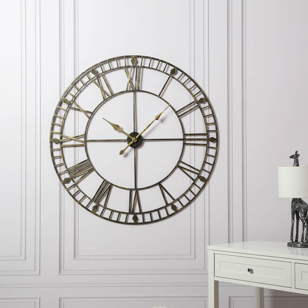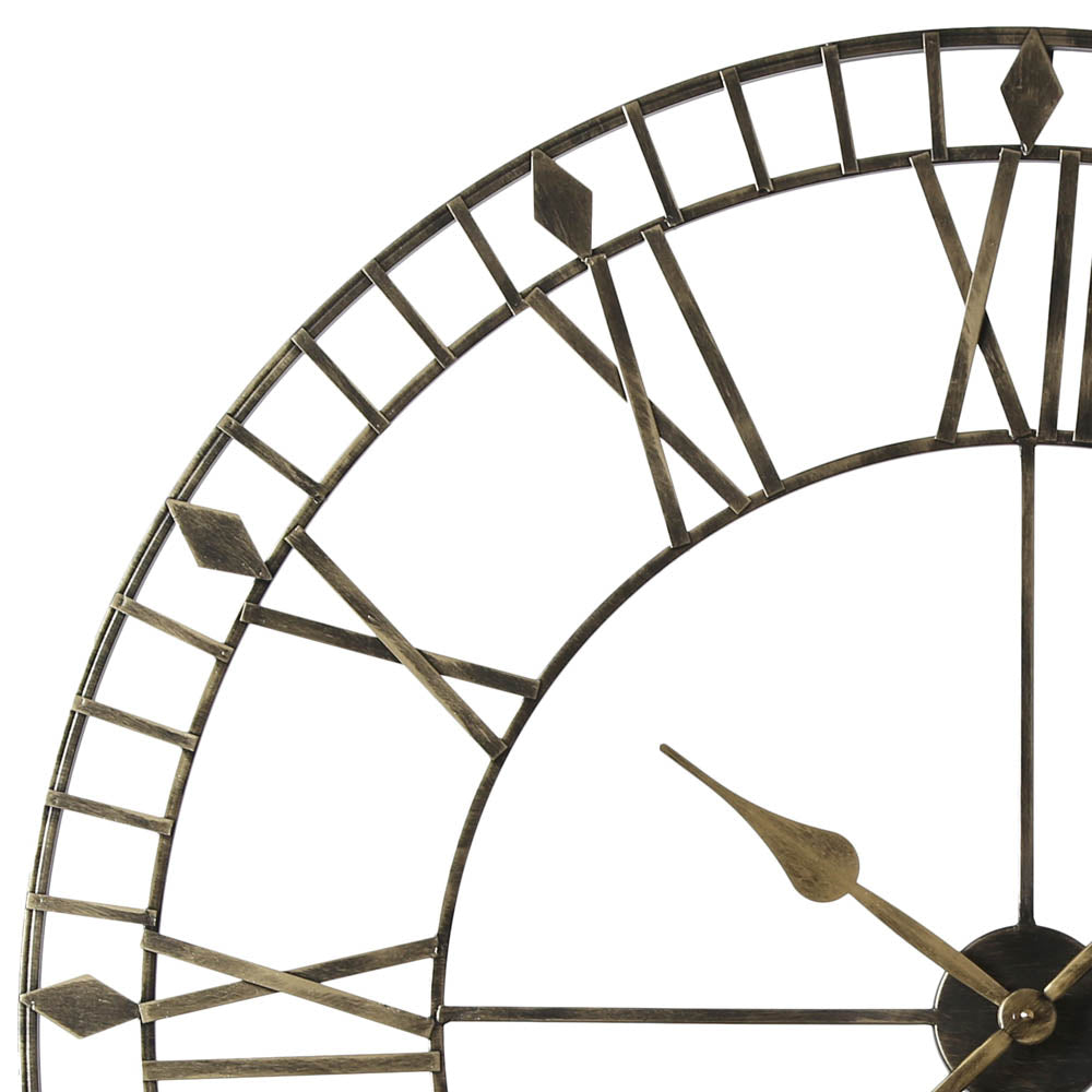 Add a unique touch of vintage style to your room with this circular wall clock. Its extra-large roman numerals make it easy to read from anywhere in the room, which makes it an ideal piece for anyone looking for a large skeleton wall clock that runs smoothly and without interrupting peaceful and quiet moments. This vintage piece is also great for living rooms.