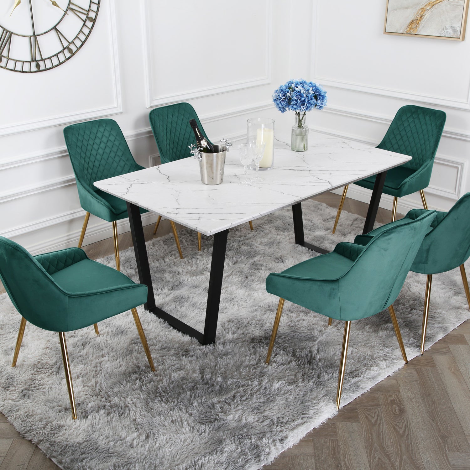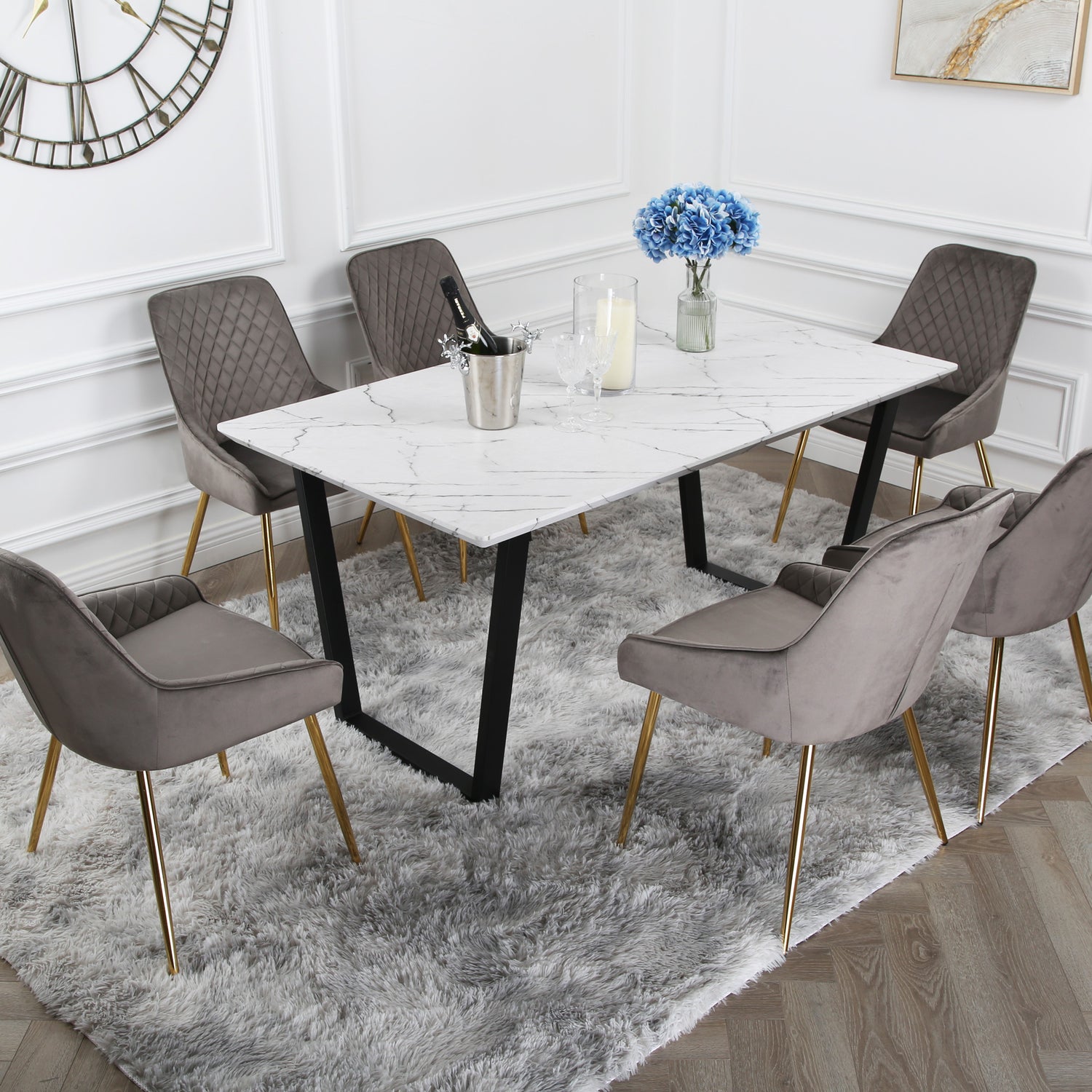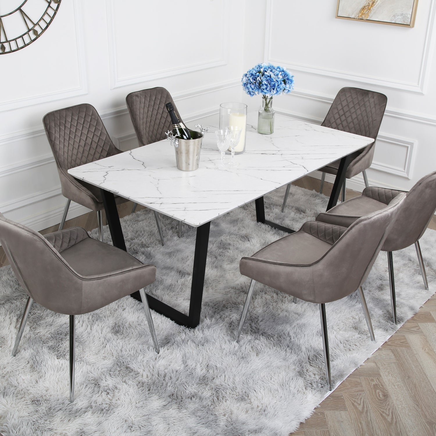 Hamilton Dining Set - Marble table and Velvet Chairs
