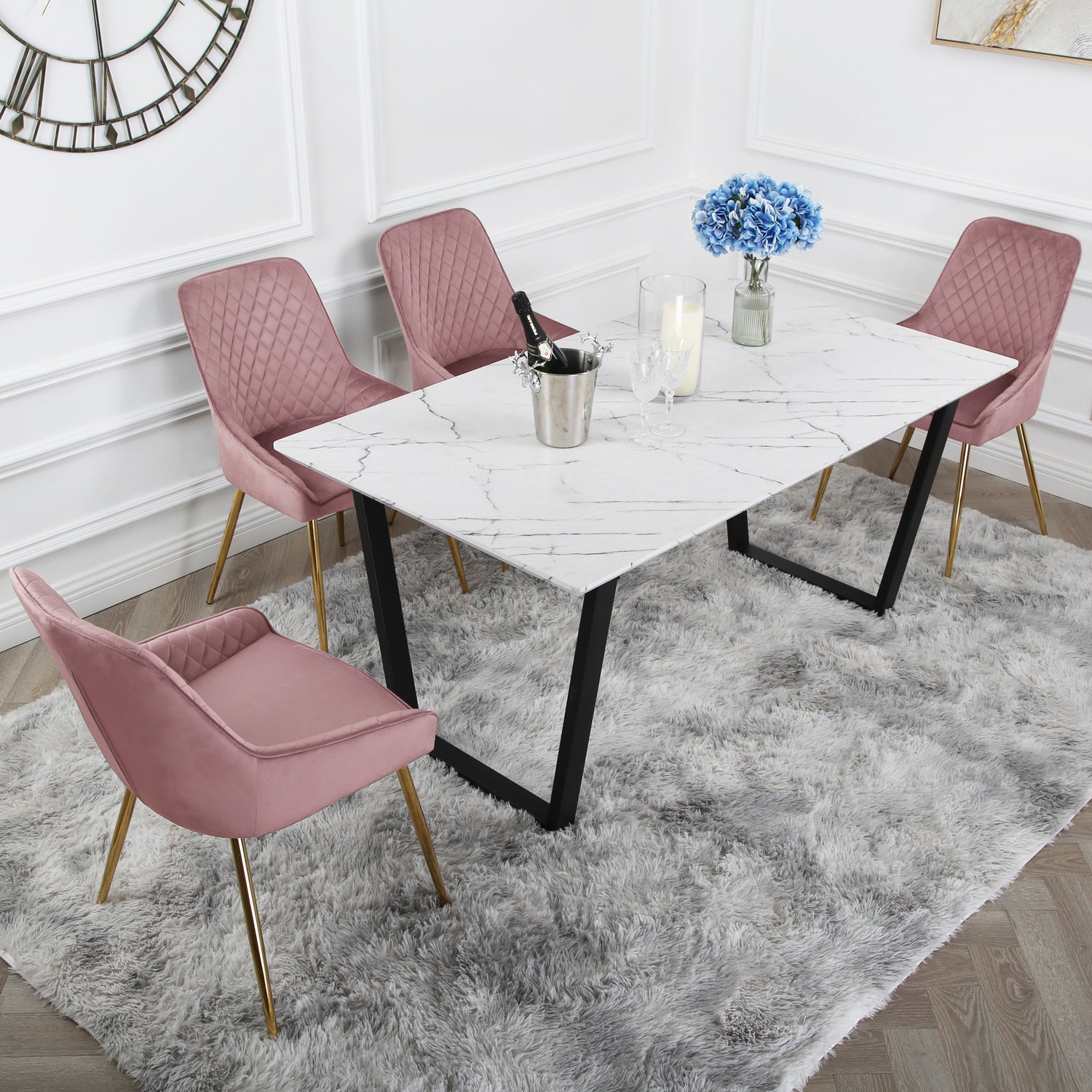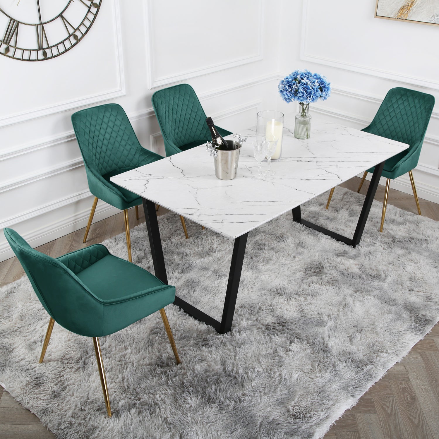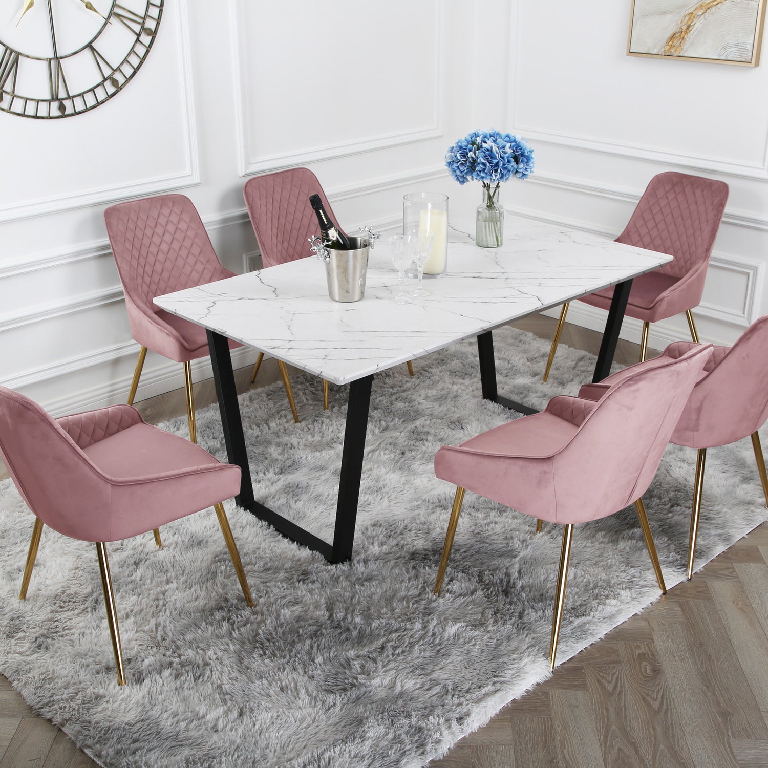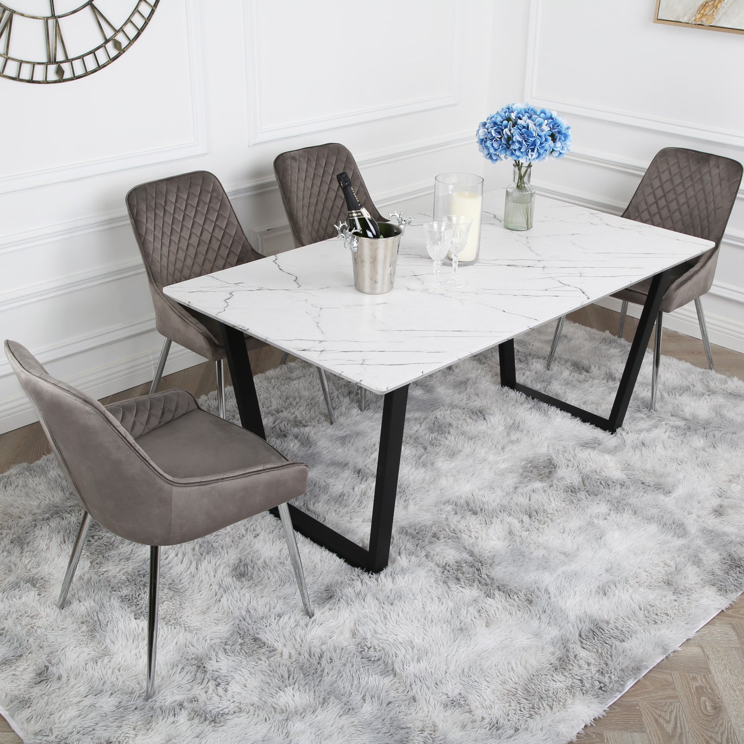 Hamilton Dining Set - Marble table and Velvet Chairs