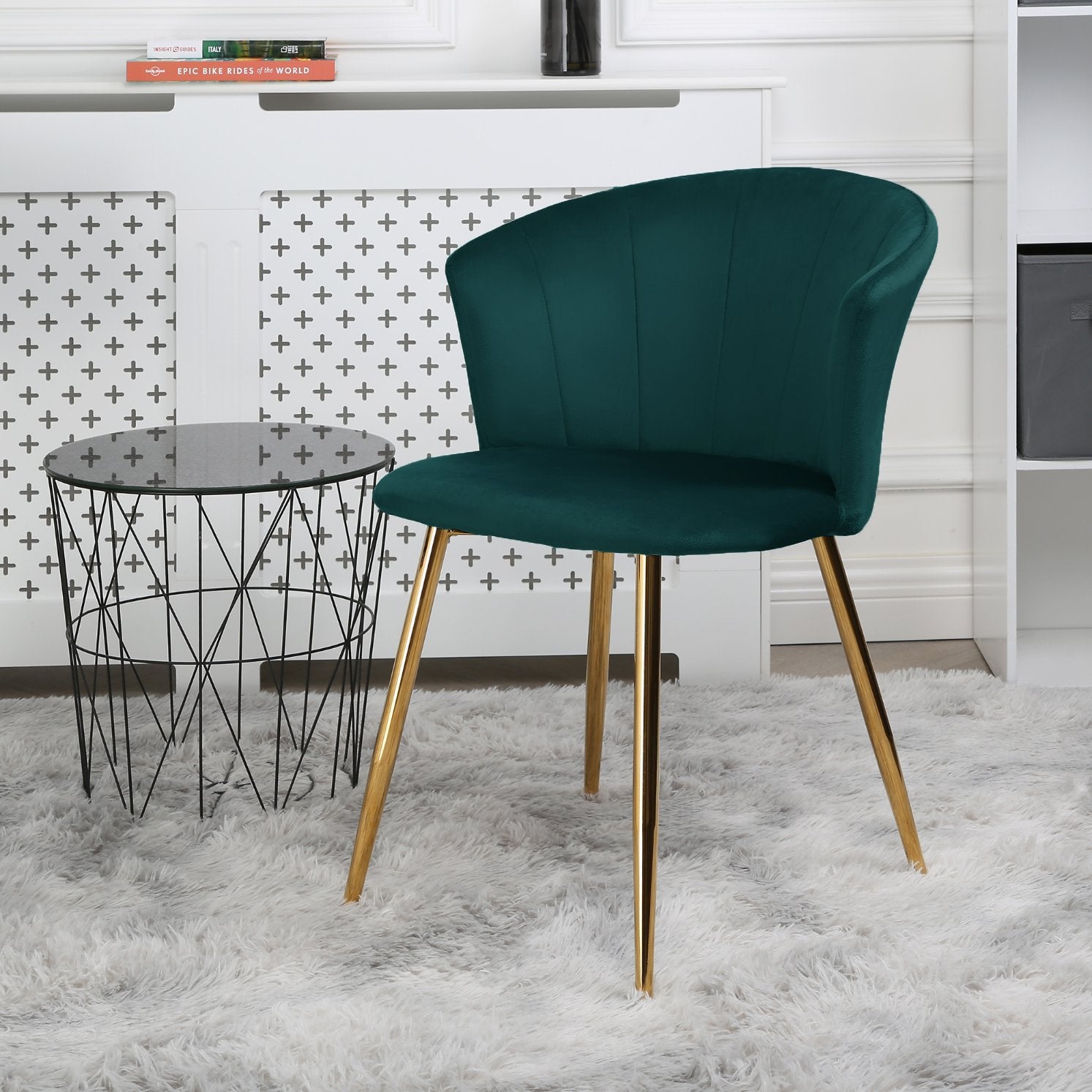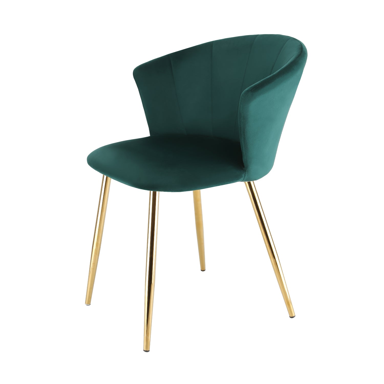 The Mill velvet dining chairs boast an art deco-inspired design, featuring a velvet-upholstered, curved backrest that will bring a touch of soft elegance to your dining space. Its sleek and luxurious appearance will elevate your mealtimes. The chair's titanium plated legs are available in either a gold or silver finish, and it comes in four colors to suit your home decor: green, grey, pink, and teal. Choose the one that best matches your style.