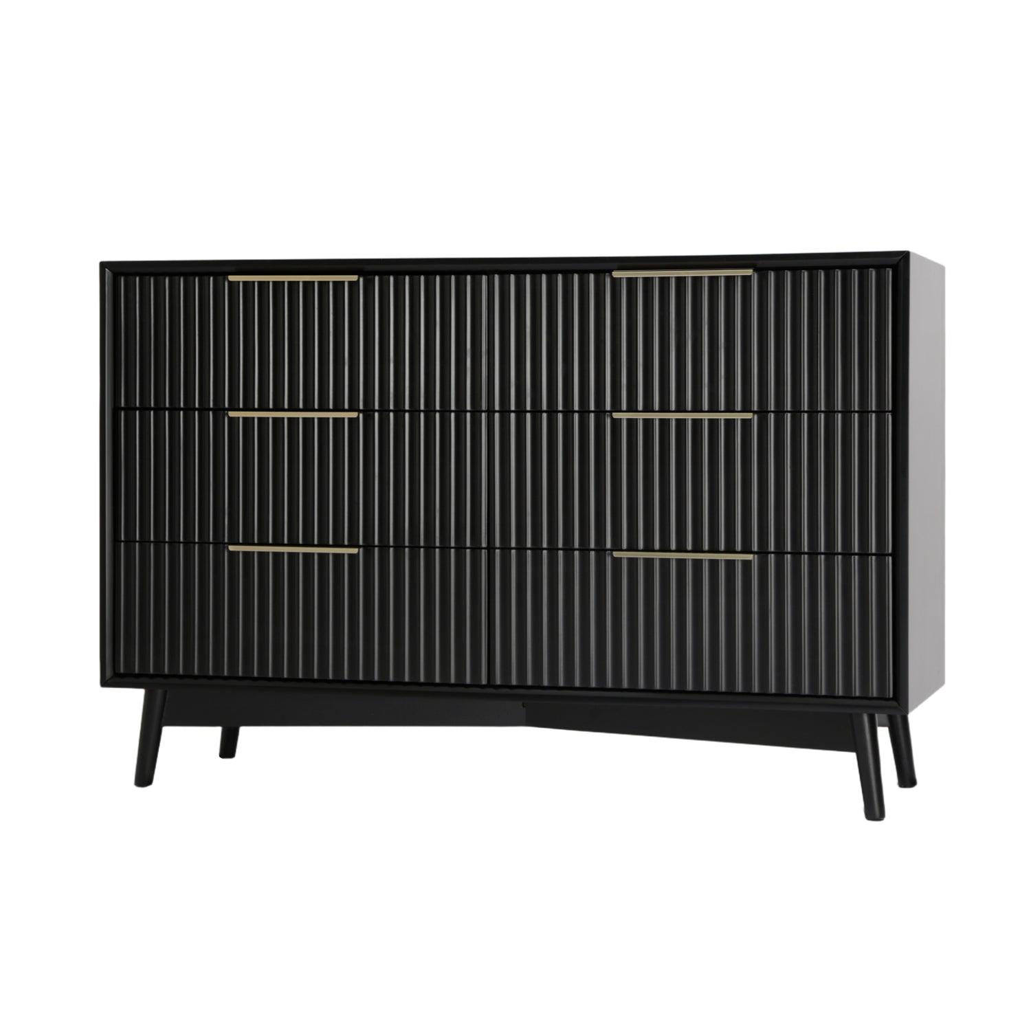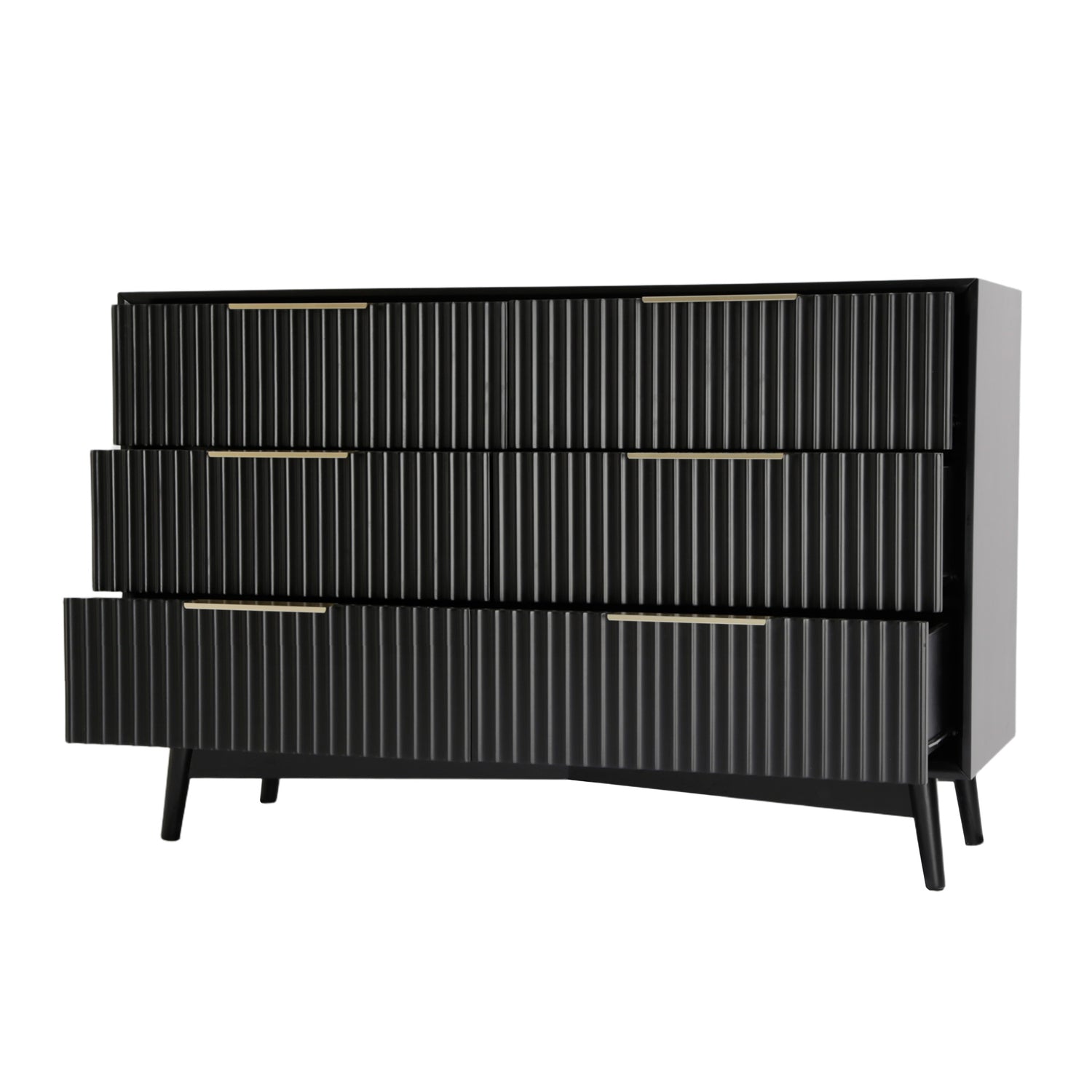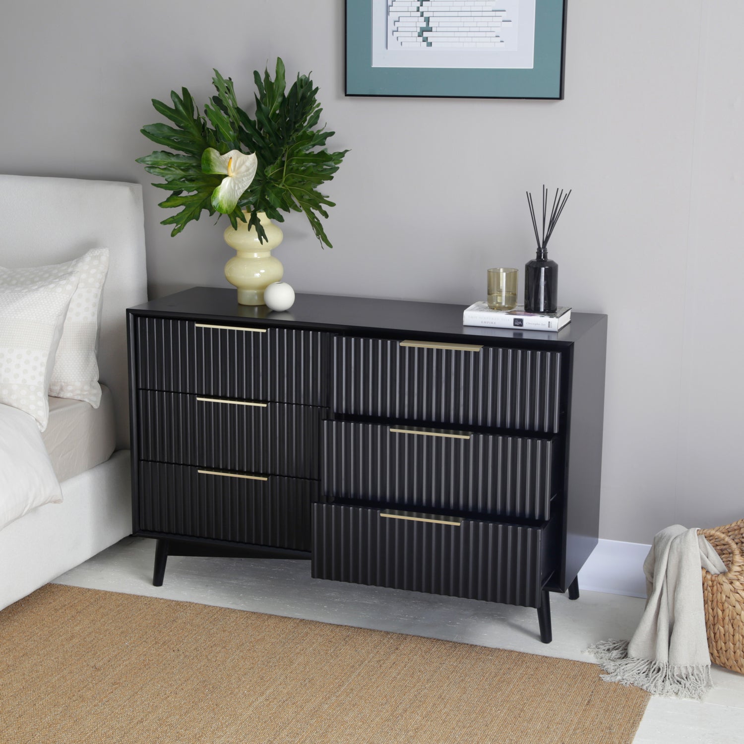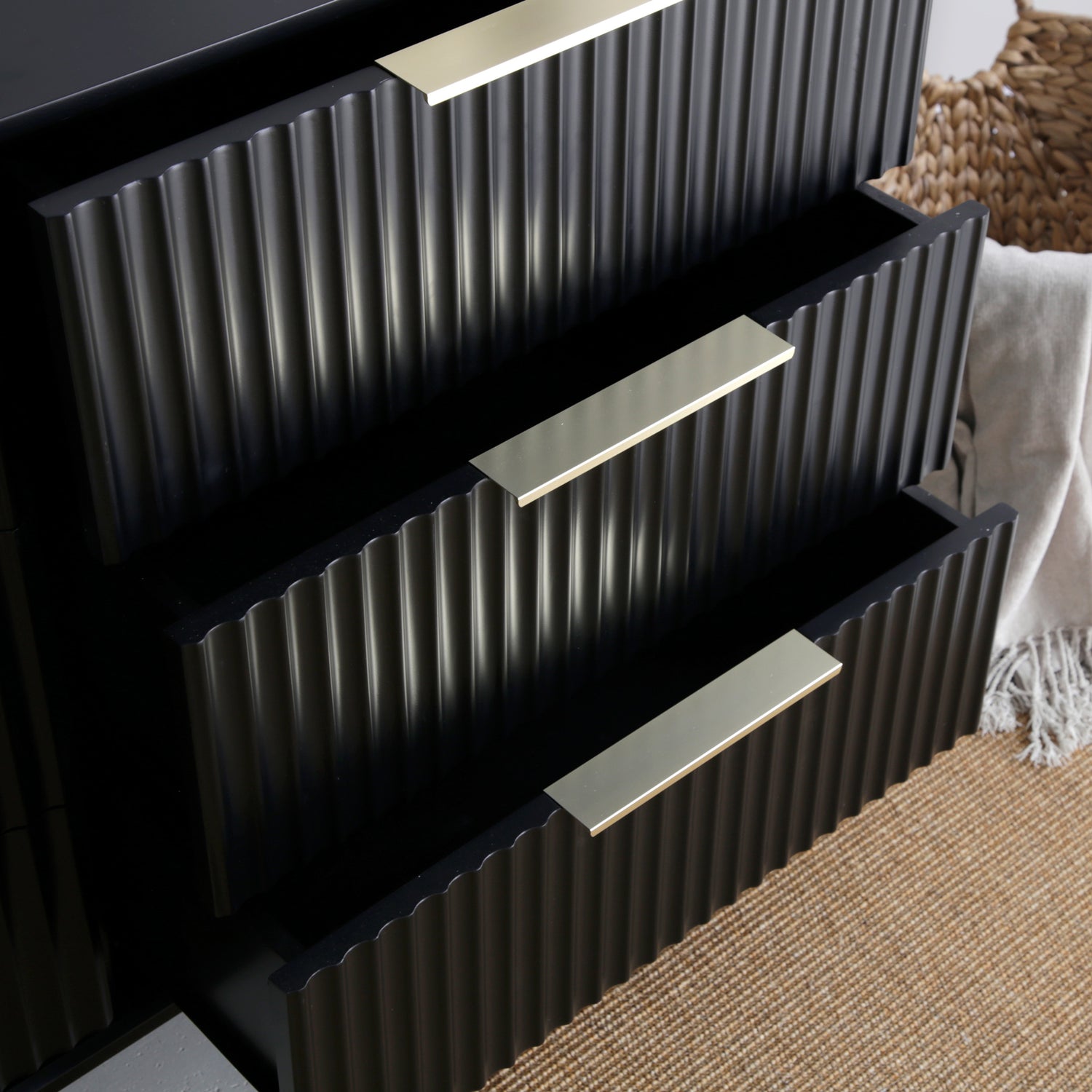Monza – 6 Chest of Drawer with Fluted Front – Black or Pale Ash