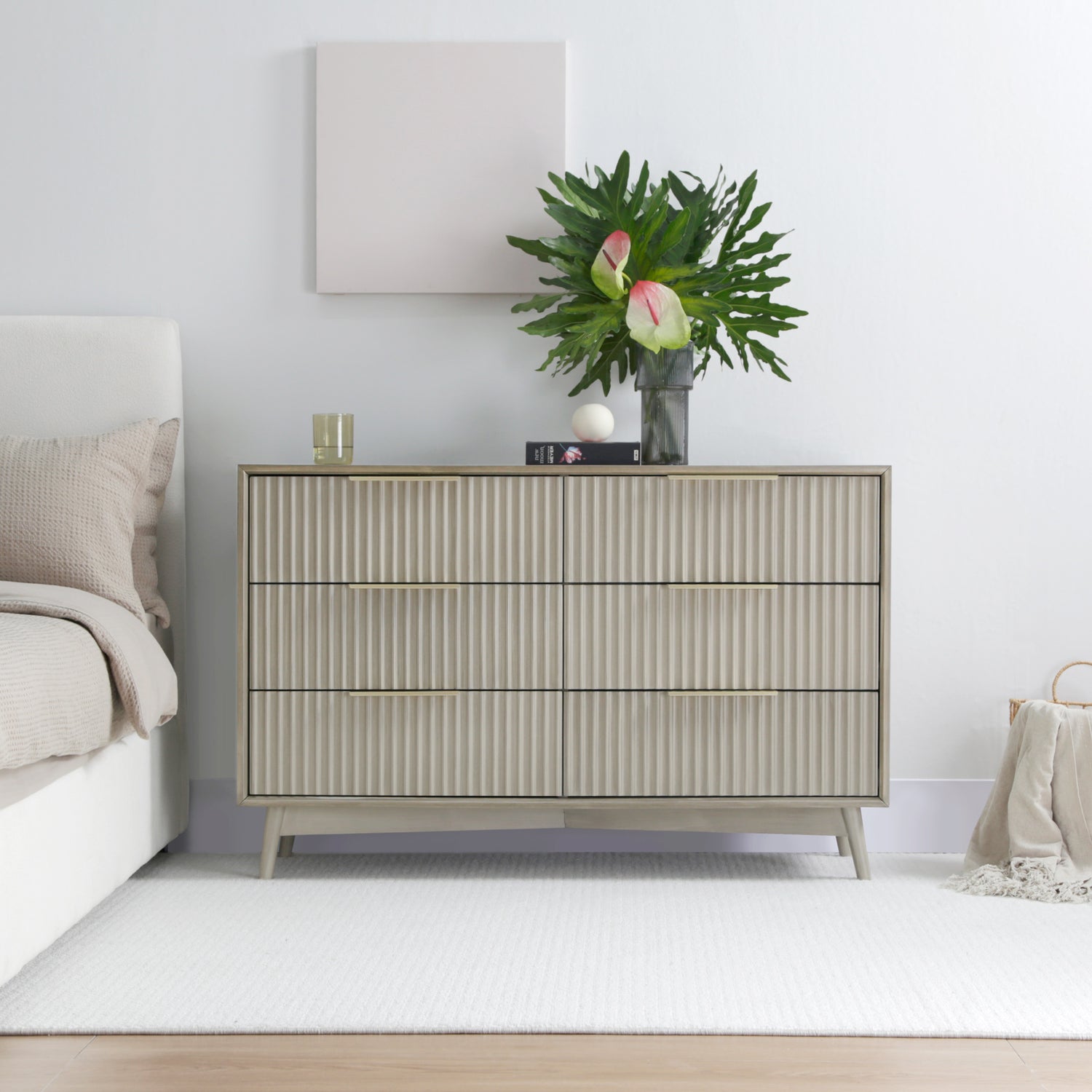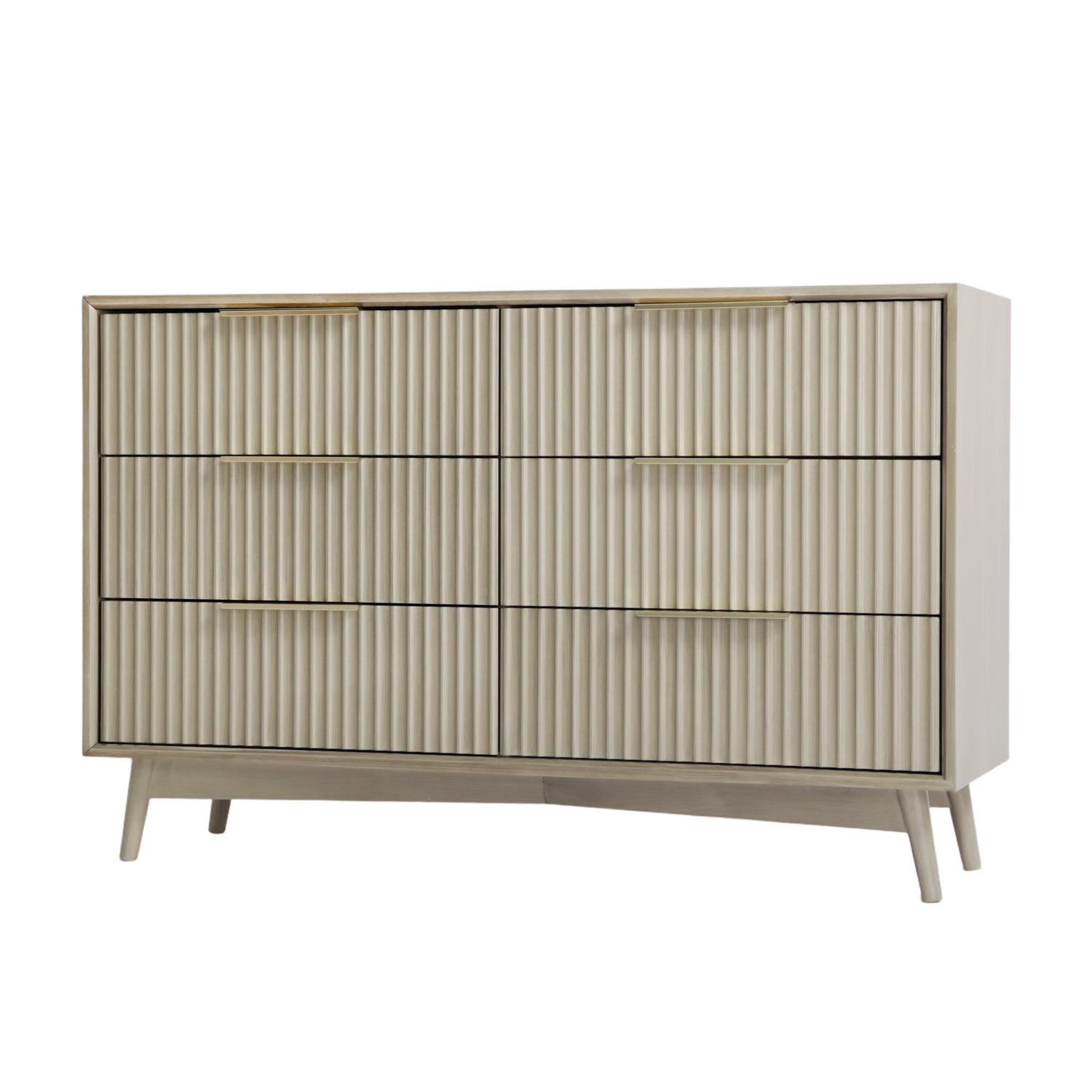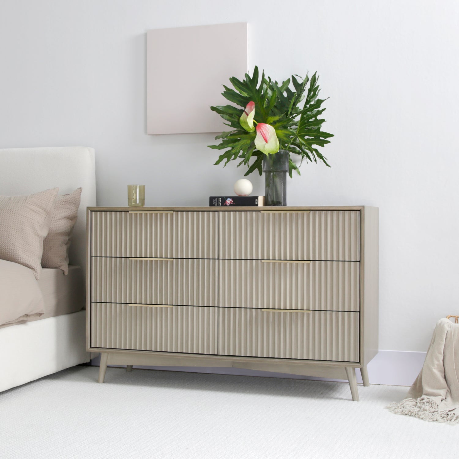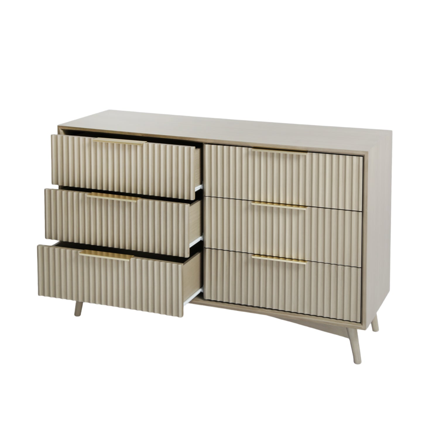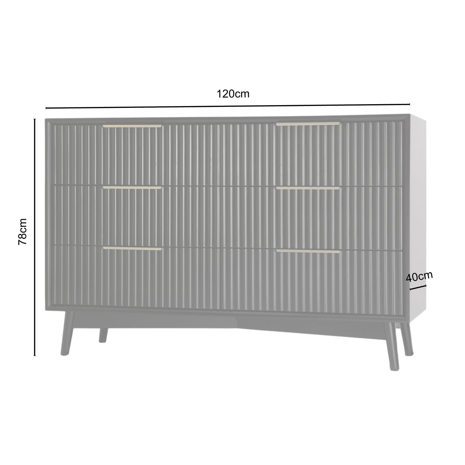 Style meets storage in the Monza  6 Chest of Drawers, a refined and functional piece crafted to elevate any room. Finished in your choice of bold black wash or soft pale ash wash, this wide drawer chest brings modern elegance and everyday practicality into your home. Featuring signature fluted drawer fronts and brushed gold handles, it’s a standout addition for those who value both design and utility.