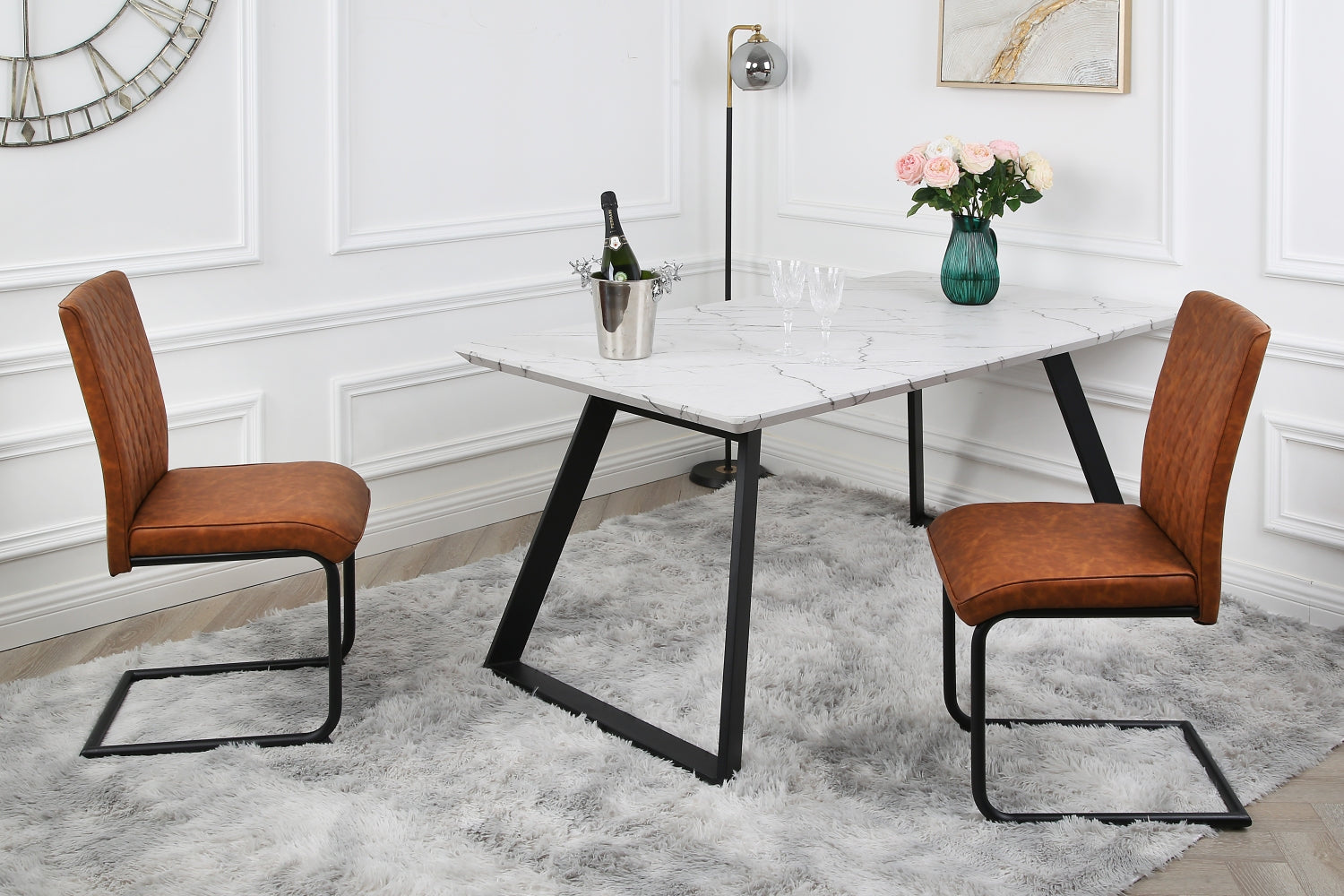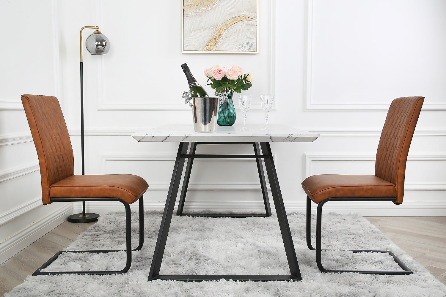 The Nestor Industrial Dining Chair is the perfect place to sit and relax, or enjoy a meal, while enjoying its sleek design. The leather back will add comfort to your sitting experience and you can match it with any piece of furniture in your home. It comes in 3 colours: brown, tan and grey.