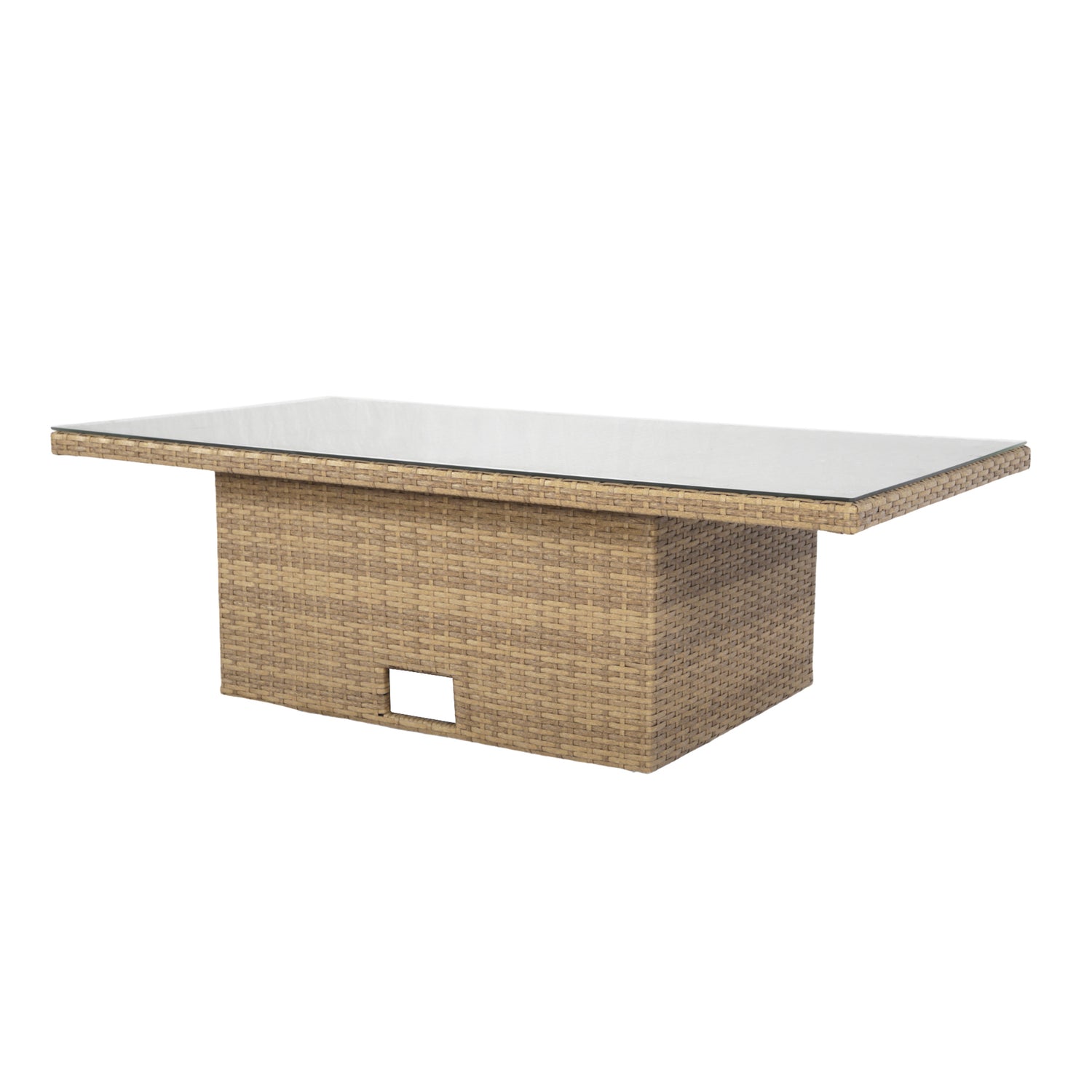 Pelias Rattan Garden Corner 8 Seater Outdoor Sofa Dining Set with Rising Table - Natural/Brown - Brown is backordered and will ship as soon as it is back in stock.