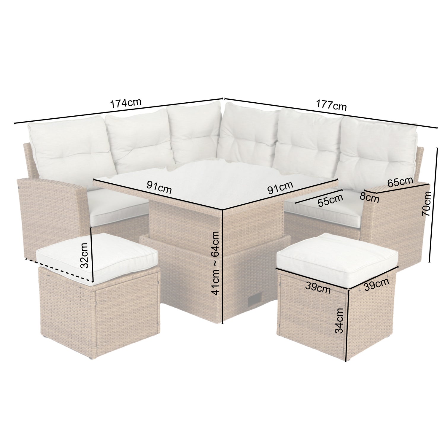 - Footstool Dimension: W40 x D40 xH35+5 cm