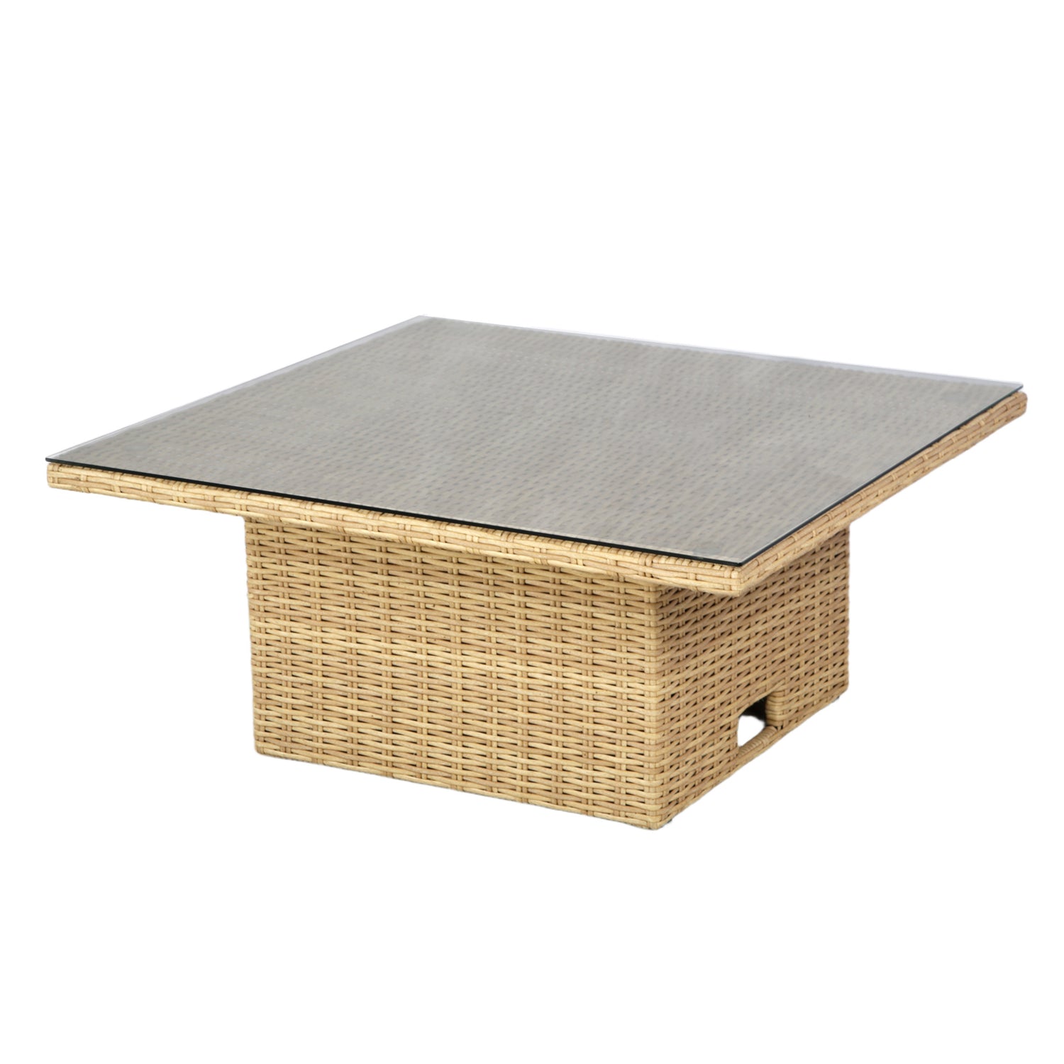 The set includes a spacious rattan corner sofa, plush seat cushions, comfortable footstools, and an adjustable table to create the perfect height for outdoor dining, coffee breaks, or casual entertaining. The table features a tempered glass top, designed to be scratch- and heat-resistant, making it durable for daily use and all types of weather.