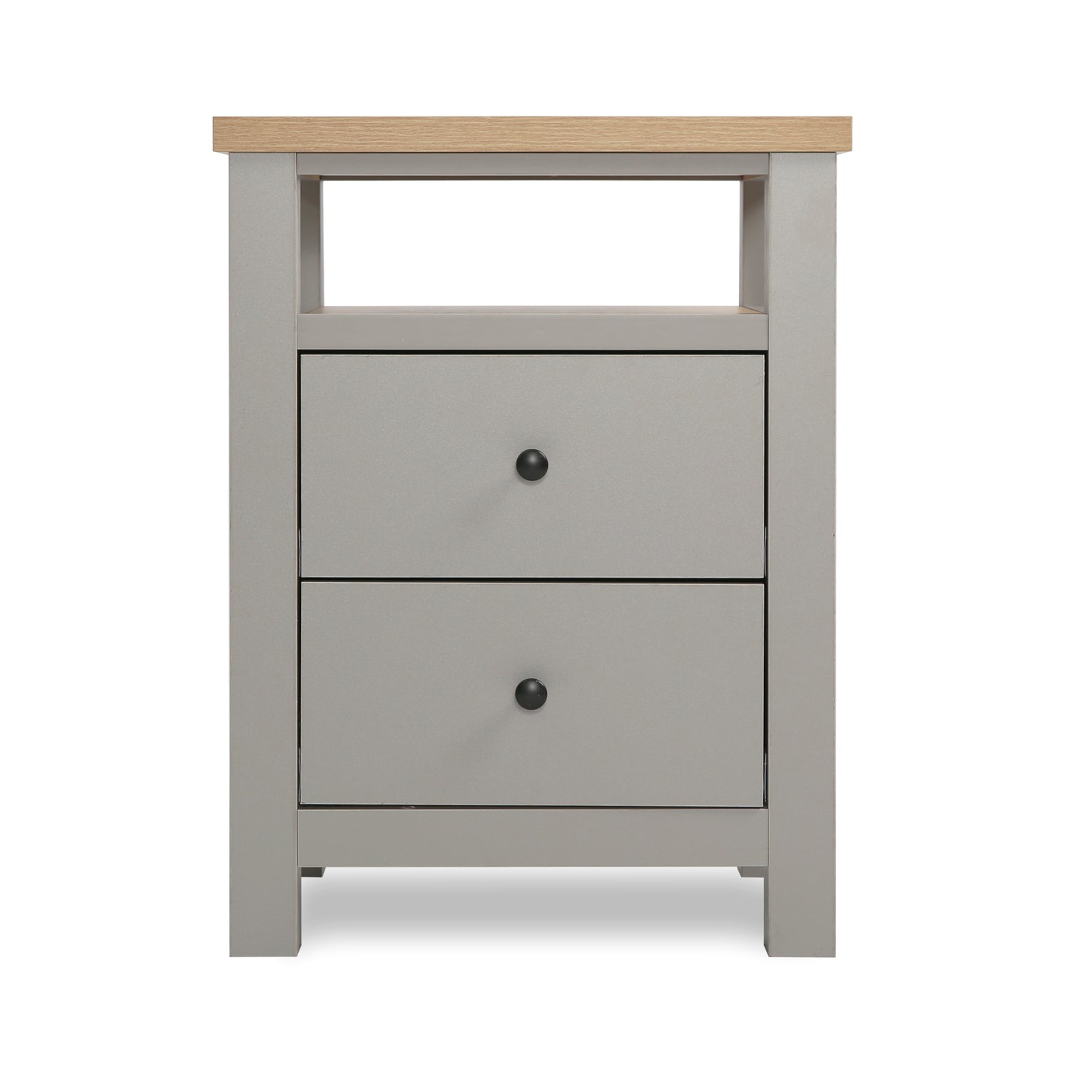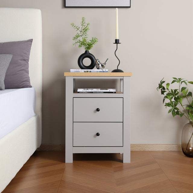 Wiltshire 2-Drawer Bedside Table - Grey with Wooden Top